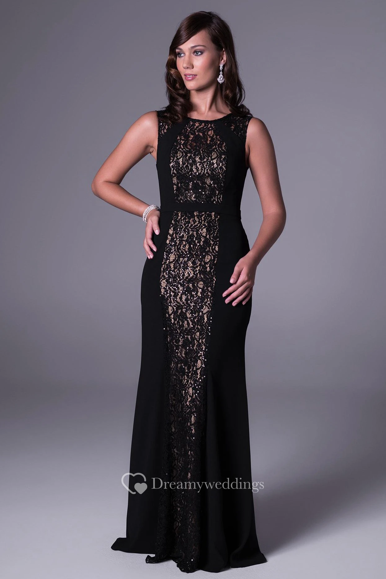 Sheath Floor-Length Scoop-Neck Sleeveless Lace Prom Dress