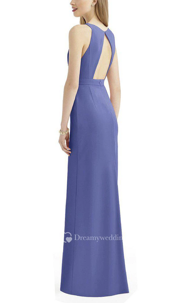 Sheath Floor-length Sleeveless Bridesmaid Dress with Keyhole Back