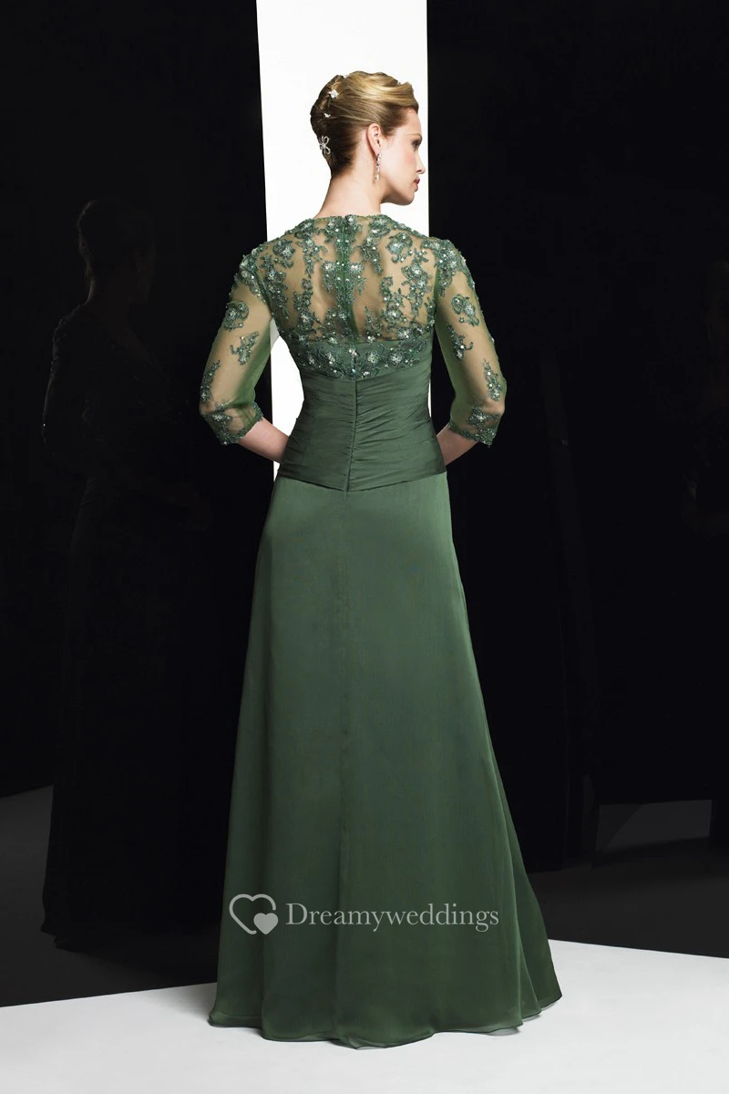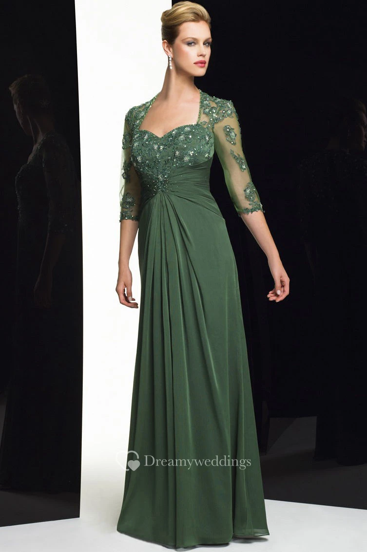 Sheath Floor-Length Sweetheart Beaded Half-Sleeve Chiffon Formal Dress With Appliques And Draping