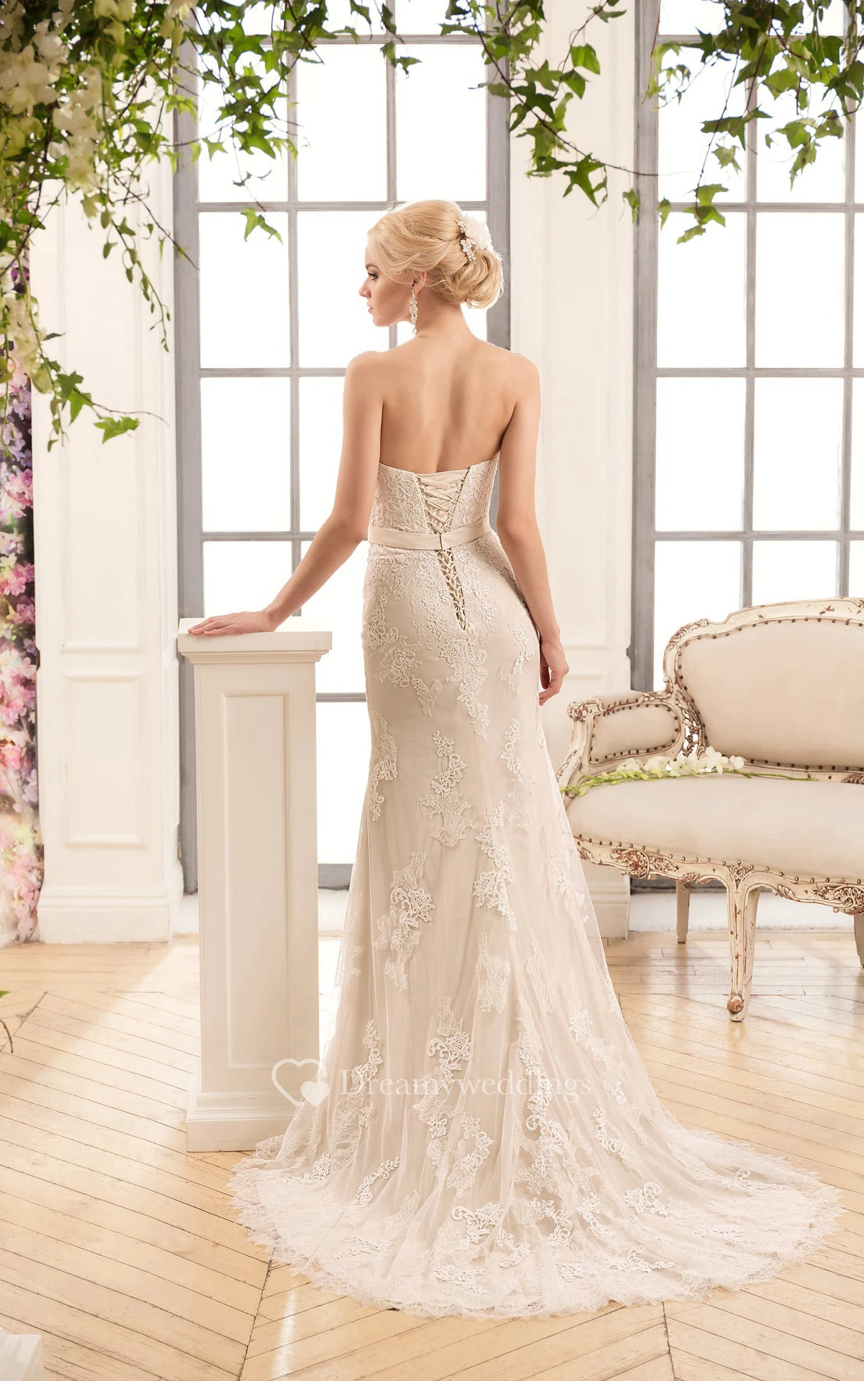Sheath Floor-Length Sweetheart Sleeveless Backless Lace Dress With Appliques And Bow
