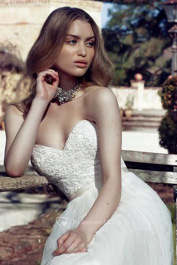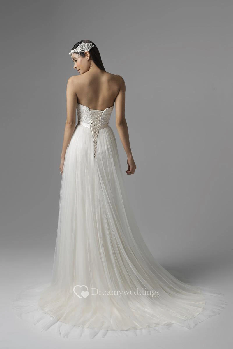 Sheath Floor-Length Sweetheart Tulle Wedding Dress With Ribbon And Corset Back