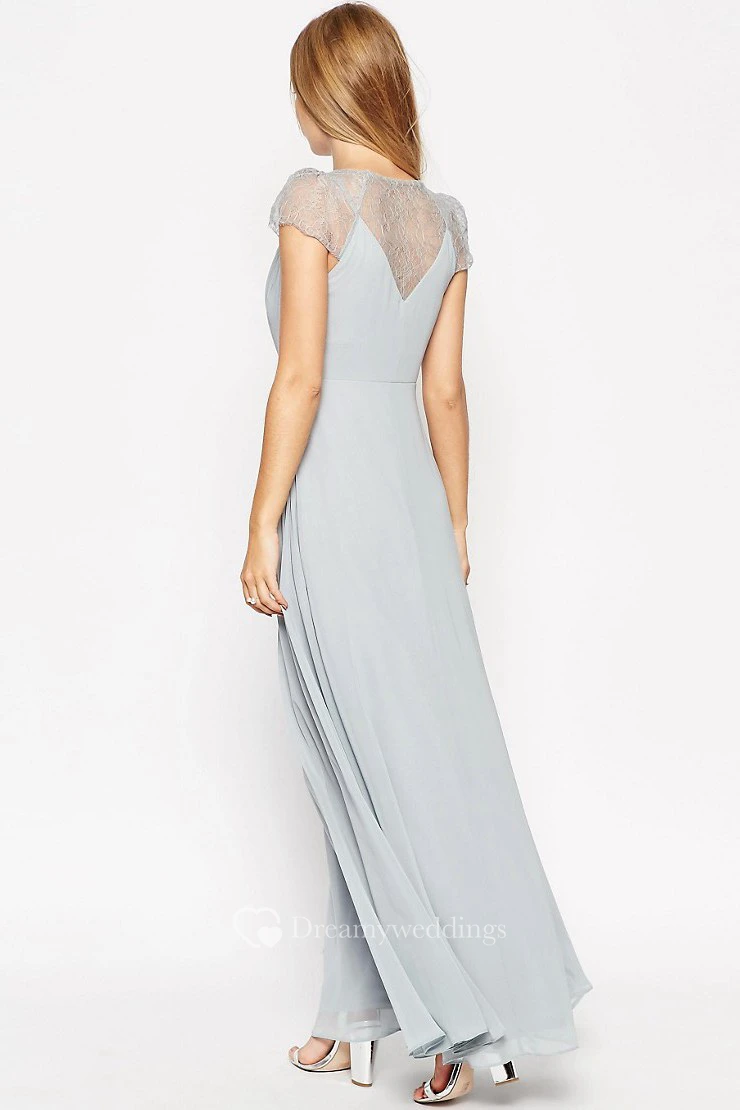 Sheath Floor-Length V-Neck Cap Sleeve Ruched Chiffon Bridesmaid Dress