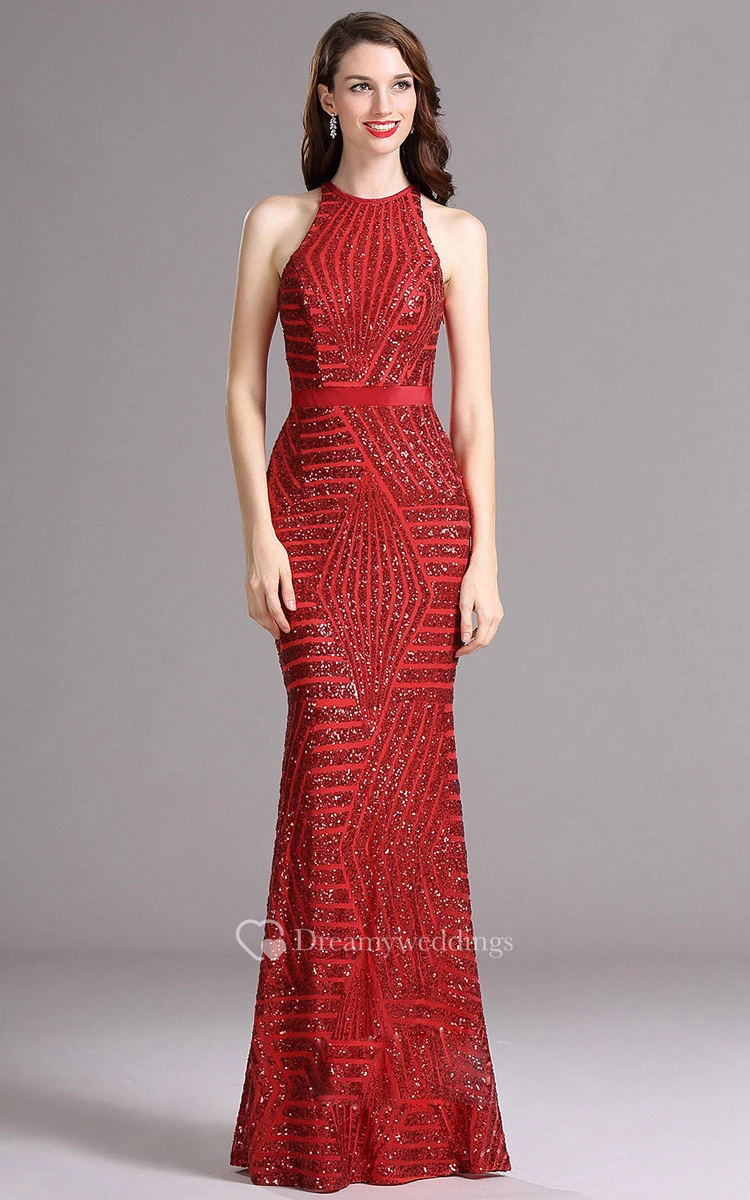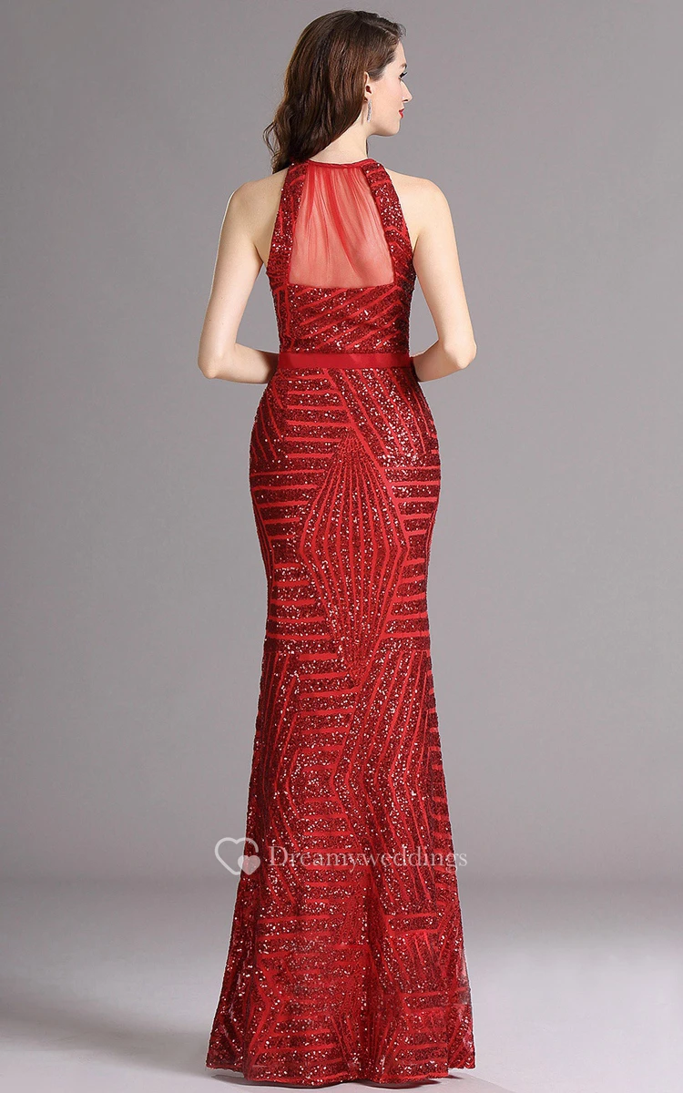 Sheath Halter Sleeveless Sequins Illusion Dress