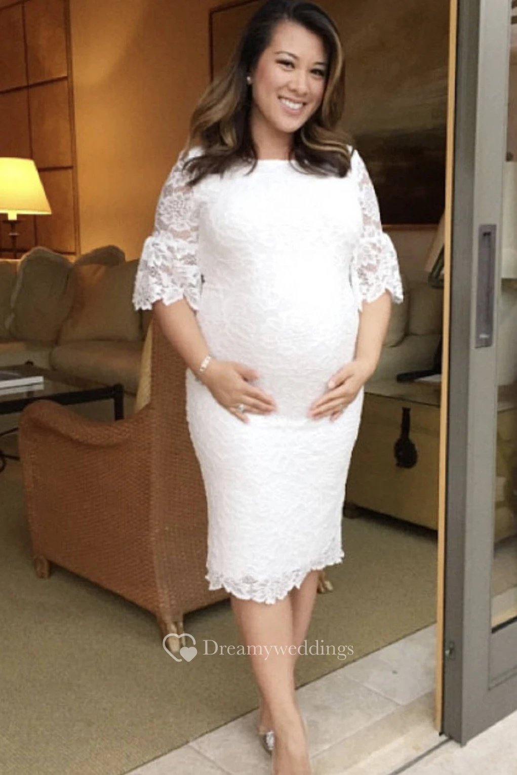 4.It is suggested that you select a dress with empire waist and a lace up back for maternity use.