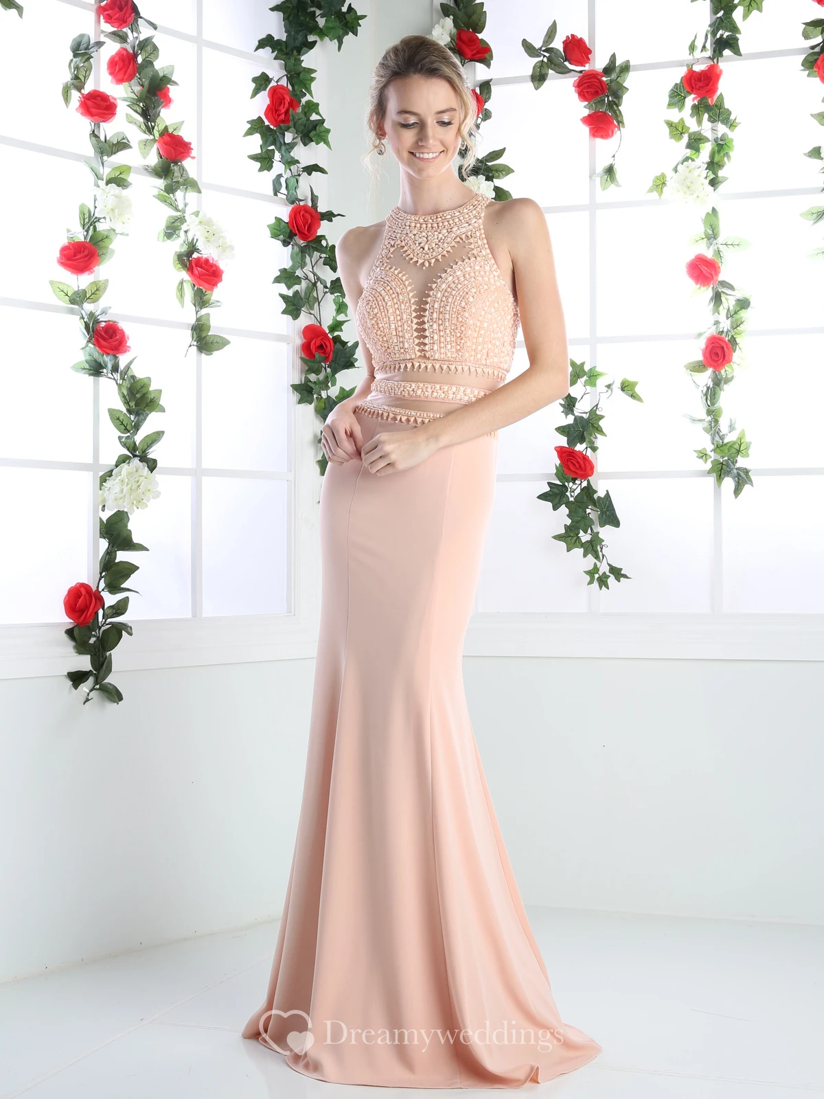 Sheath Jewel-Neck Sleeveless Jersey Keyhole Dress With Beading