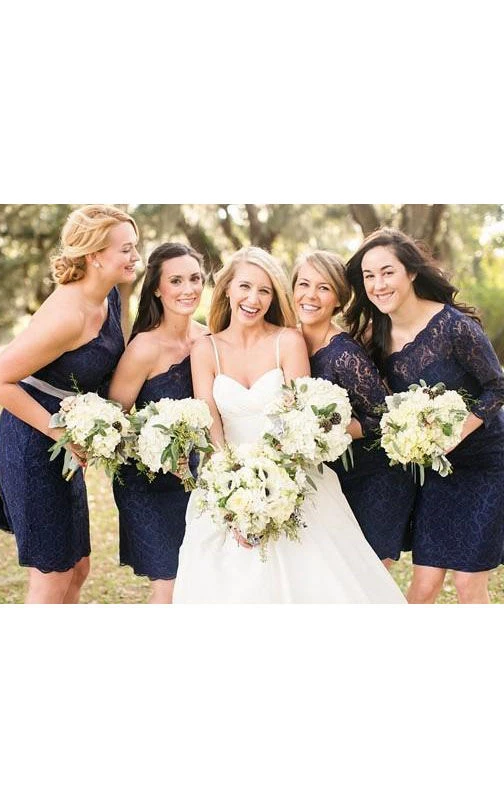 Sheath Knee-Length One-shoulder Scoop Long Sleeve Pleats Flower Sequins Jersey Dress