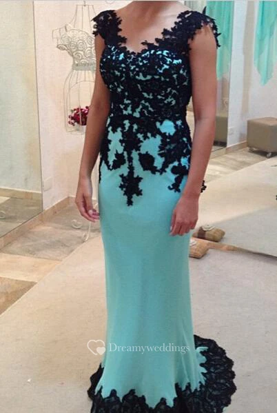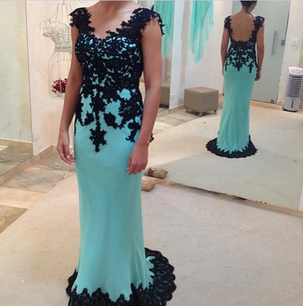 Sheath Long Black Lace Prom Dress Sexy Half Sleeves