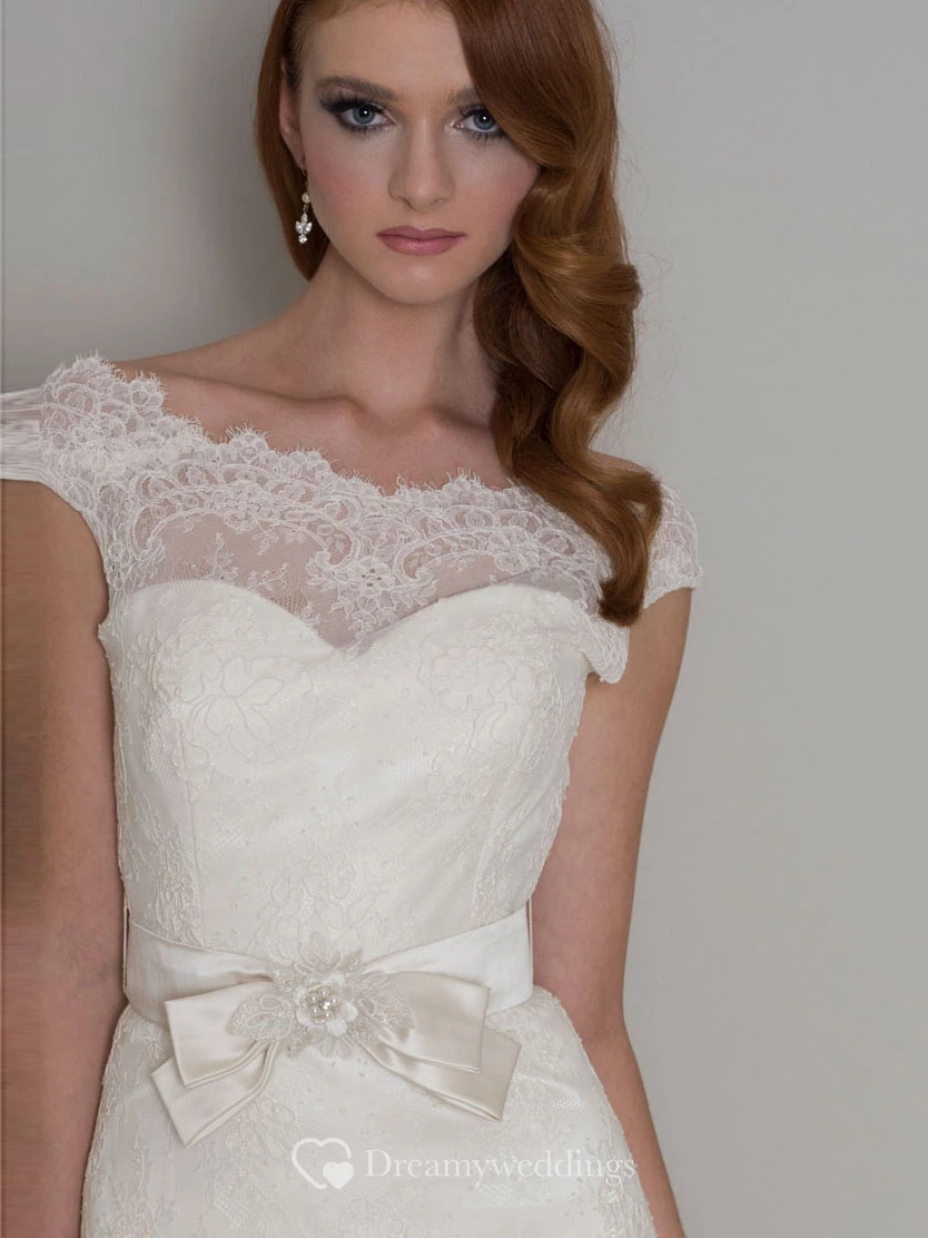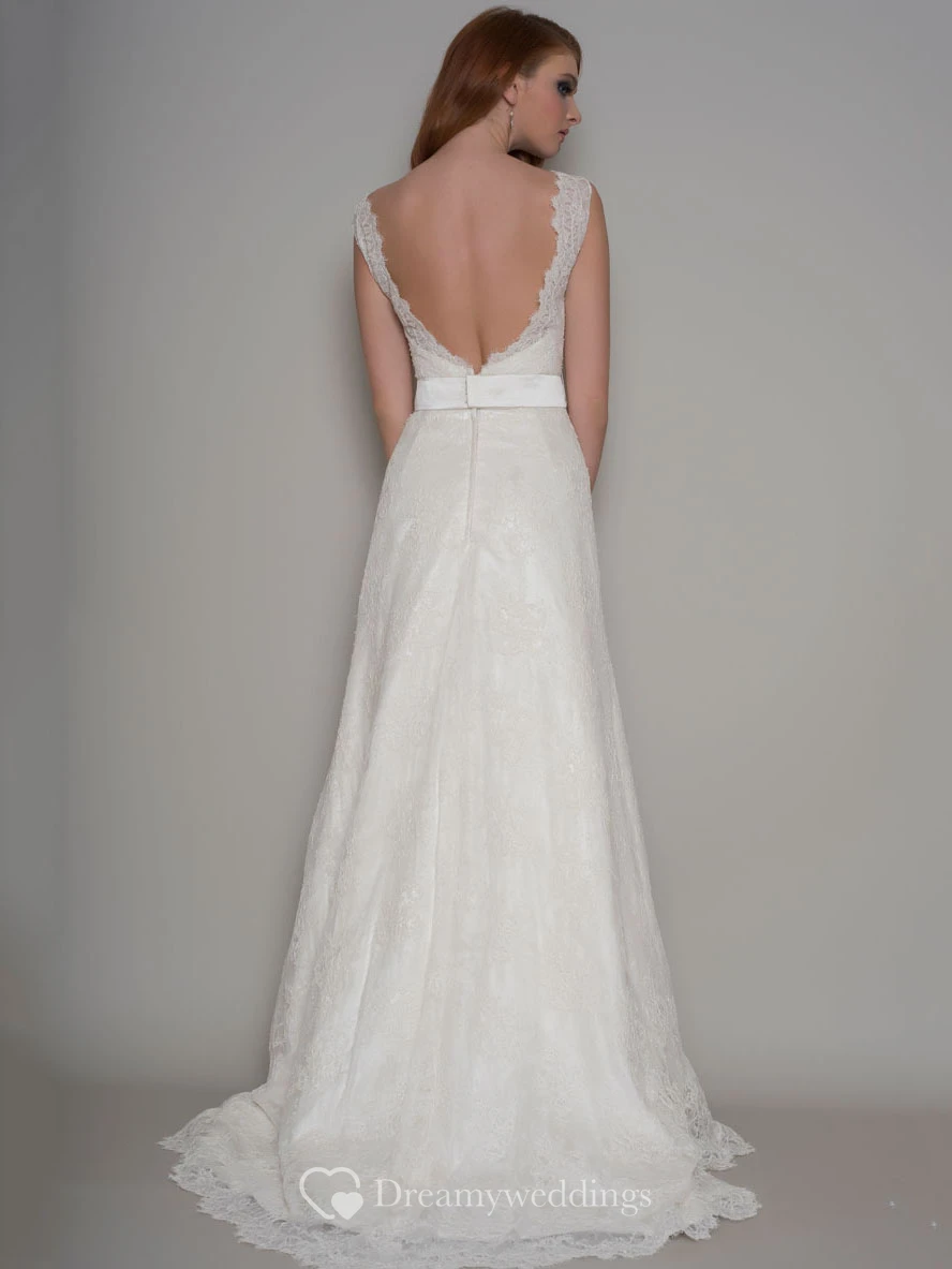 Sheath Long Bowed Scoop-Neck Lace Wedding Dress