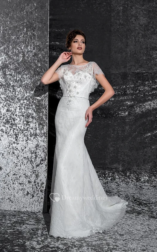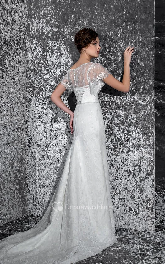 Sheath Long Scoop Poet-Sleeve Illusion Lace Dress With Beading