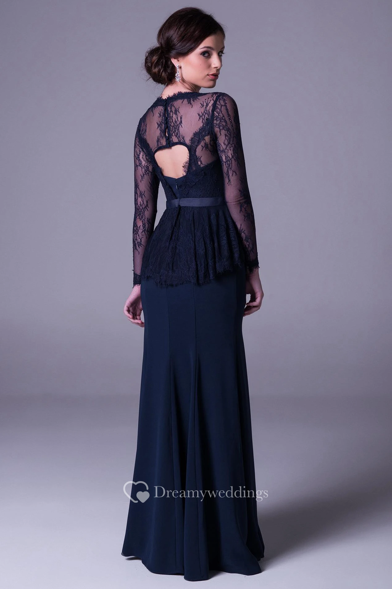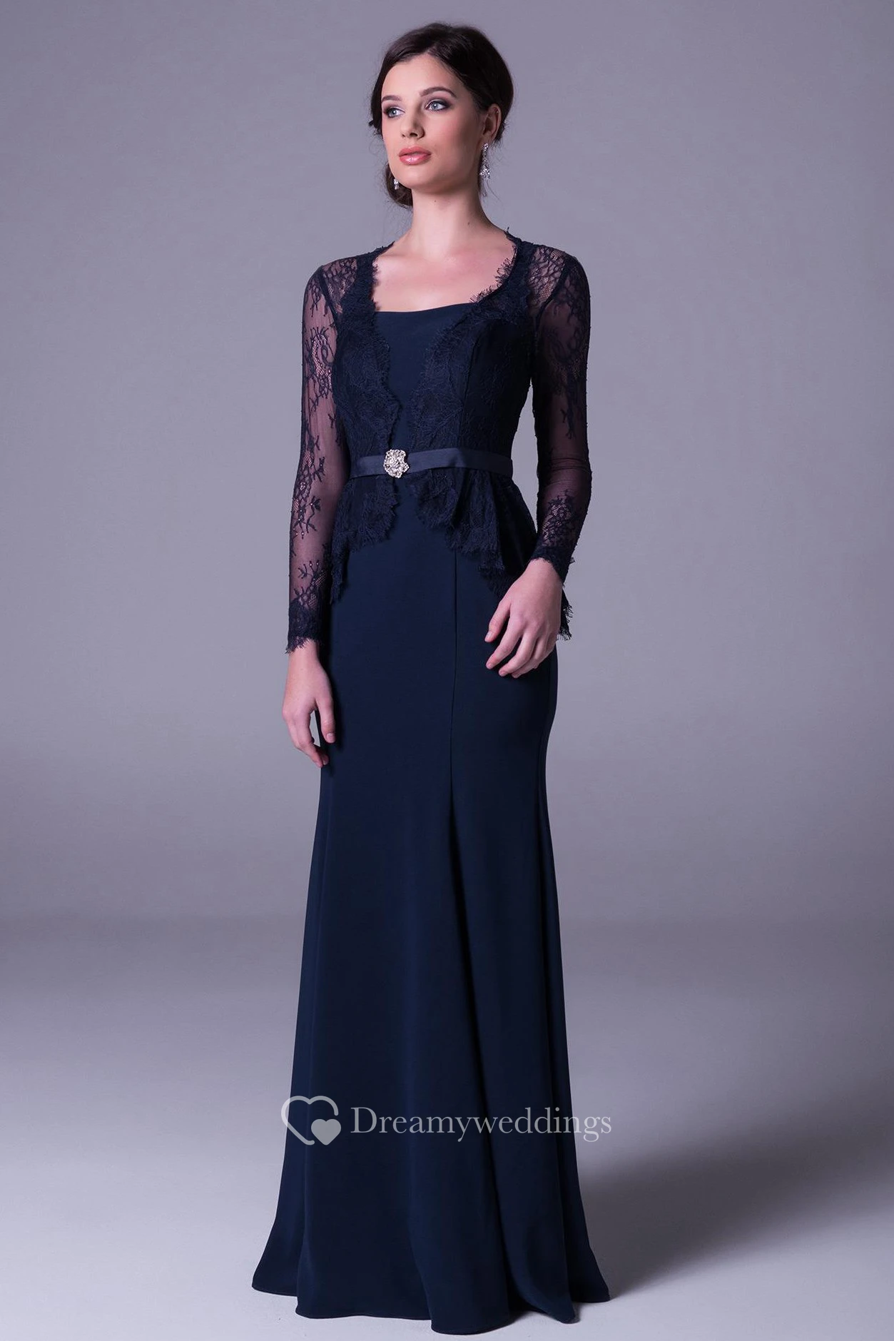 Sheath Long-Sleeve Long Lace Square-Neck Prom Dress With Broach