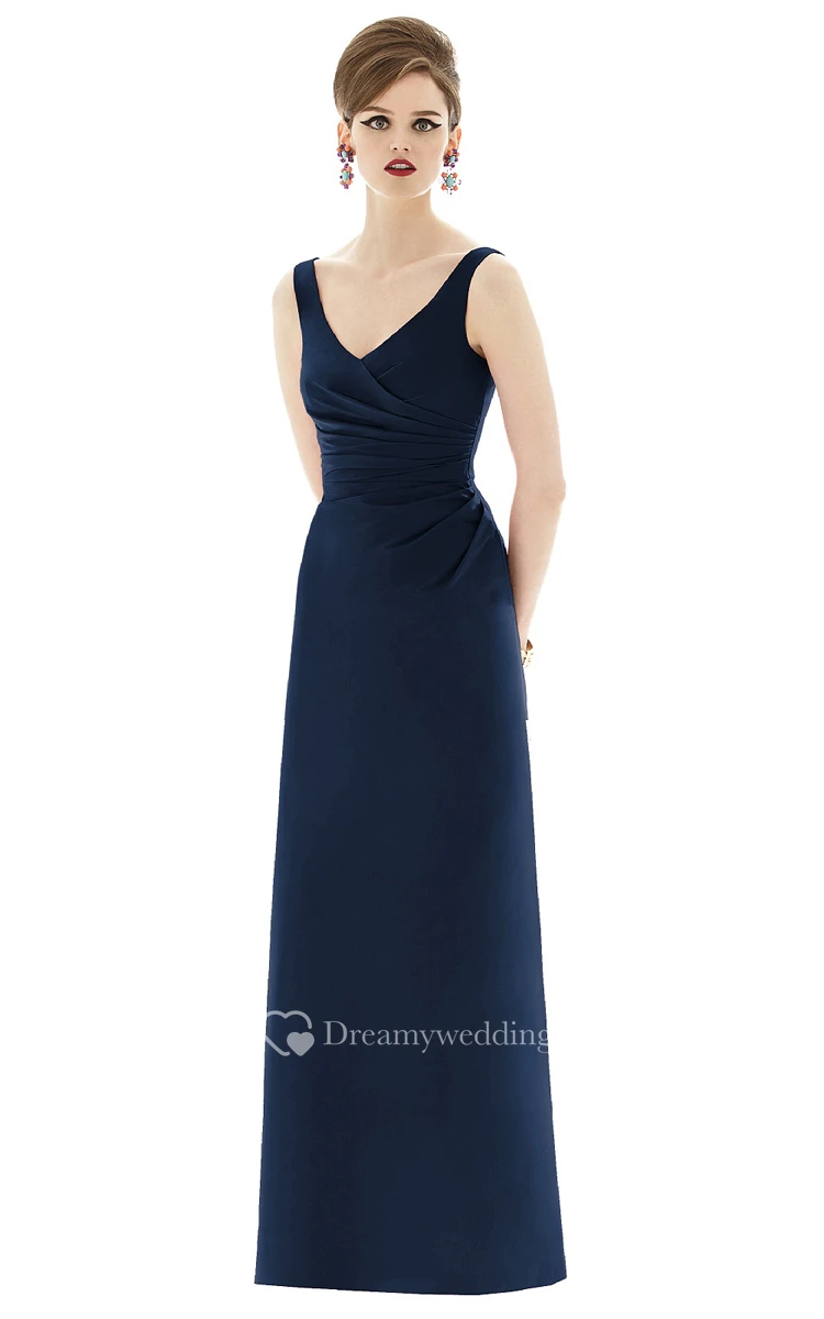 Sheath Long V-Neck Side Ruched Gown with Low-V Back