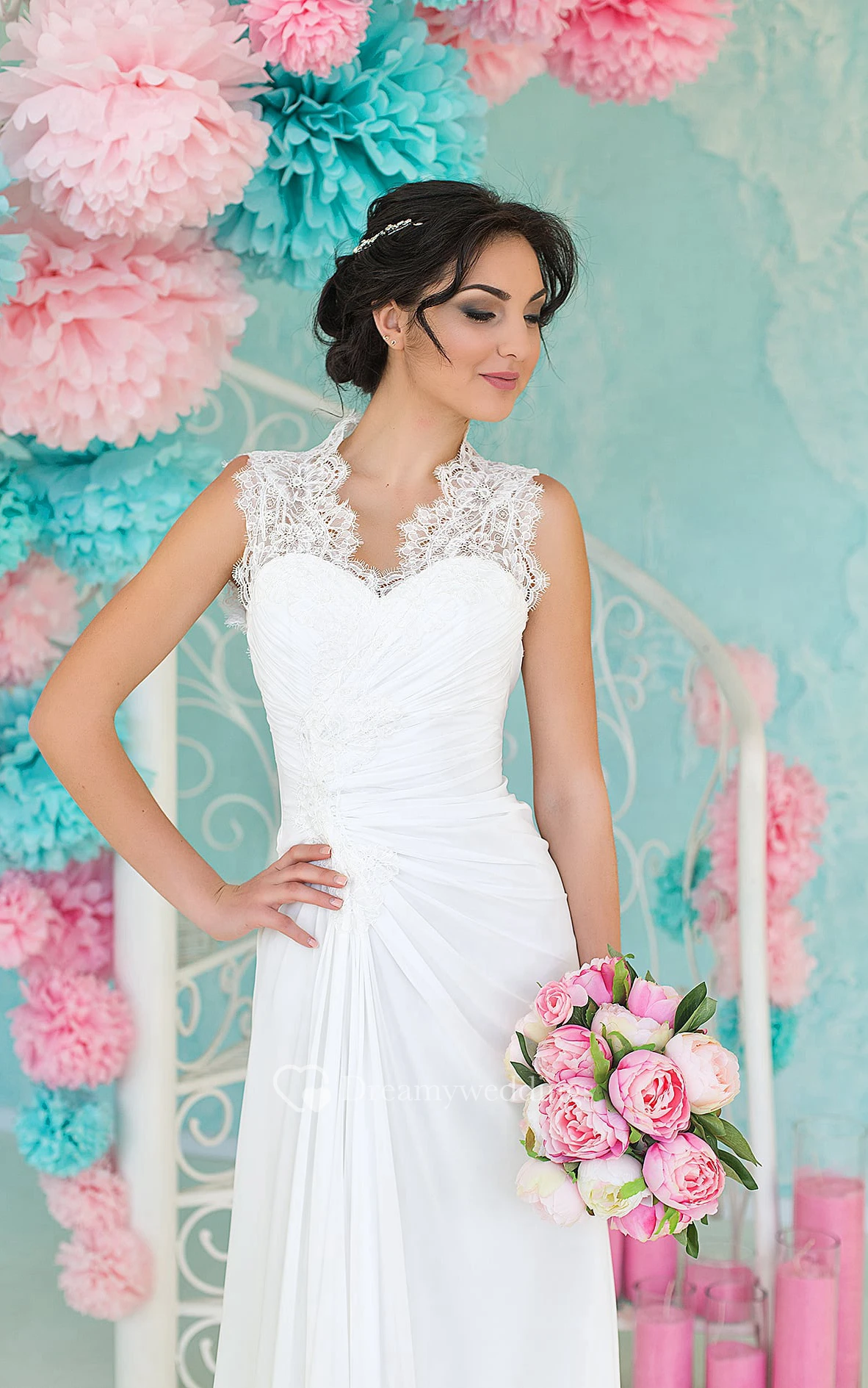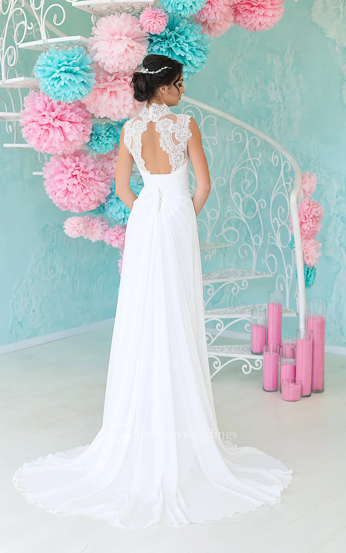 Sheath Long V-Neck Sleeveless Keyhole Chiffon Dress With Side Draping