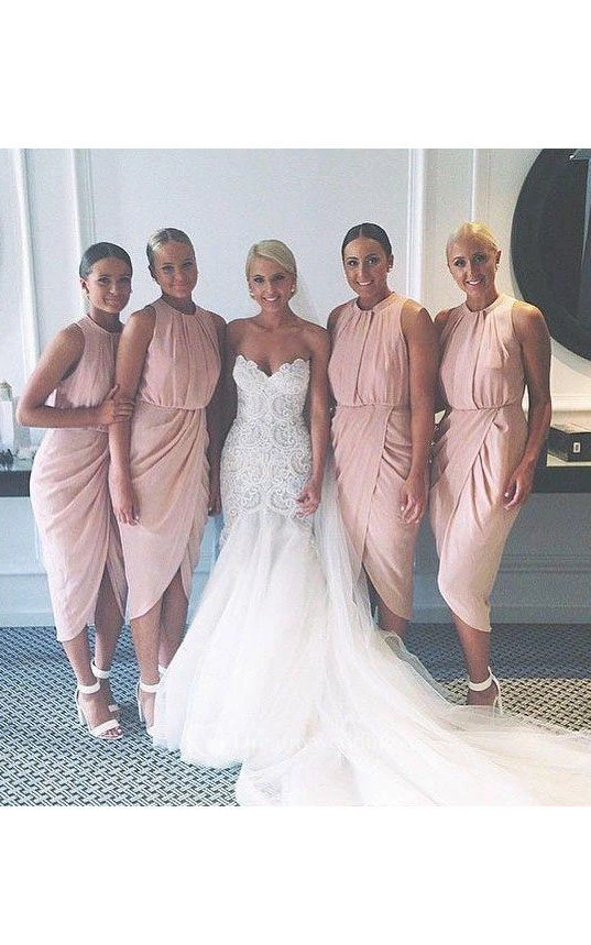 Sheath Mini Sleeveless Bell T-Shirt Criss Cross Split Front Split Chiffon Dress
