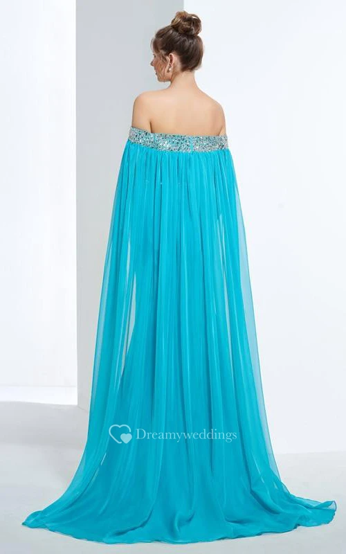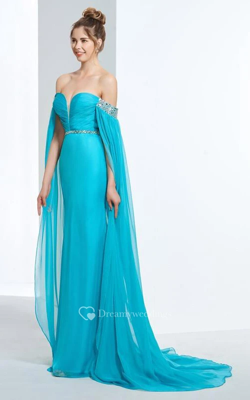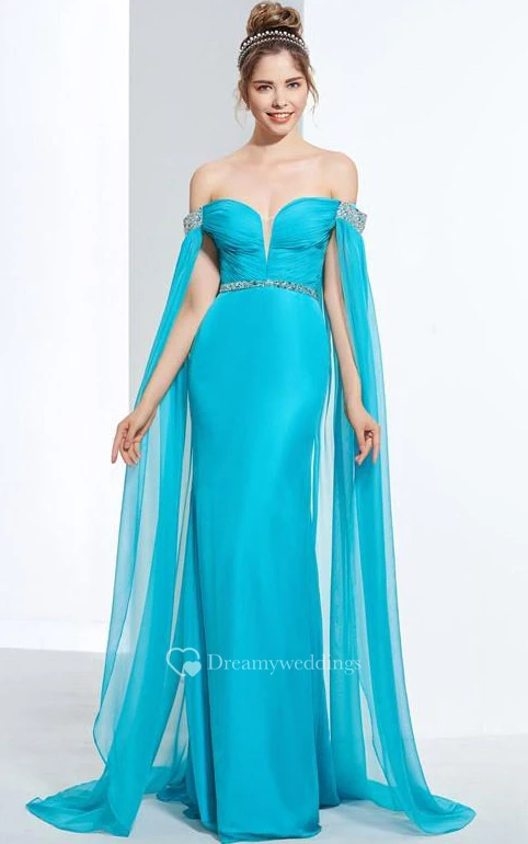 Sheath Off-the-Shoulder Beading Pleats Sequins Watteau Train Prom Dress