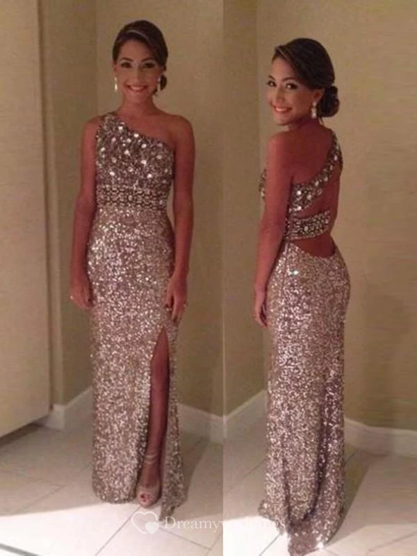 sheath One-Shoulder Sleeveless Sequins Floor-Length Dresses
