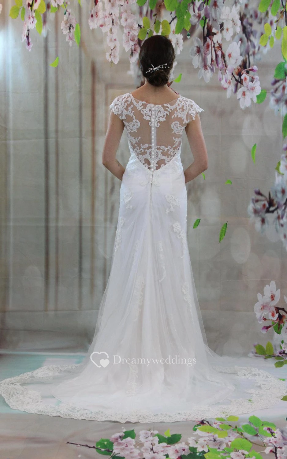 Sheath Short Sleeve Tulle Dress With Jewel Neckline and Illusion Back