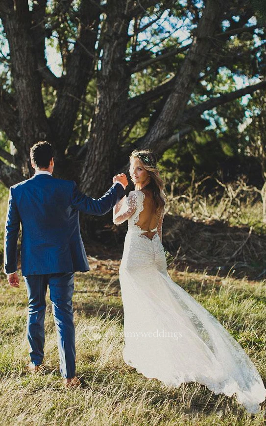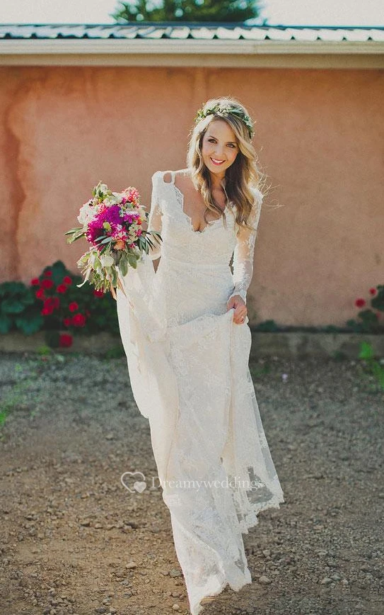 Sheath Short V-Neck Long Sleeve Bell Illusion Pleats Illusion Court Train Backless Illusion Lace Dress