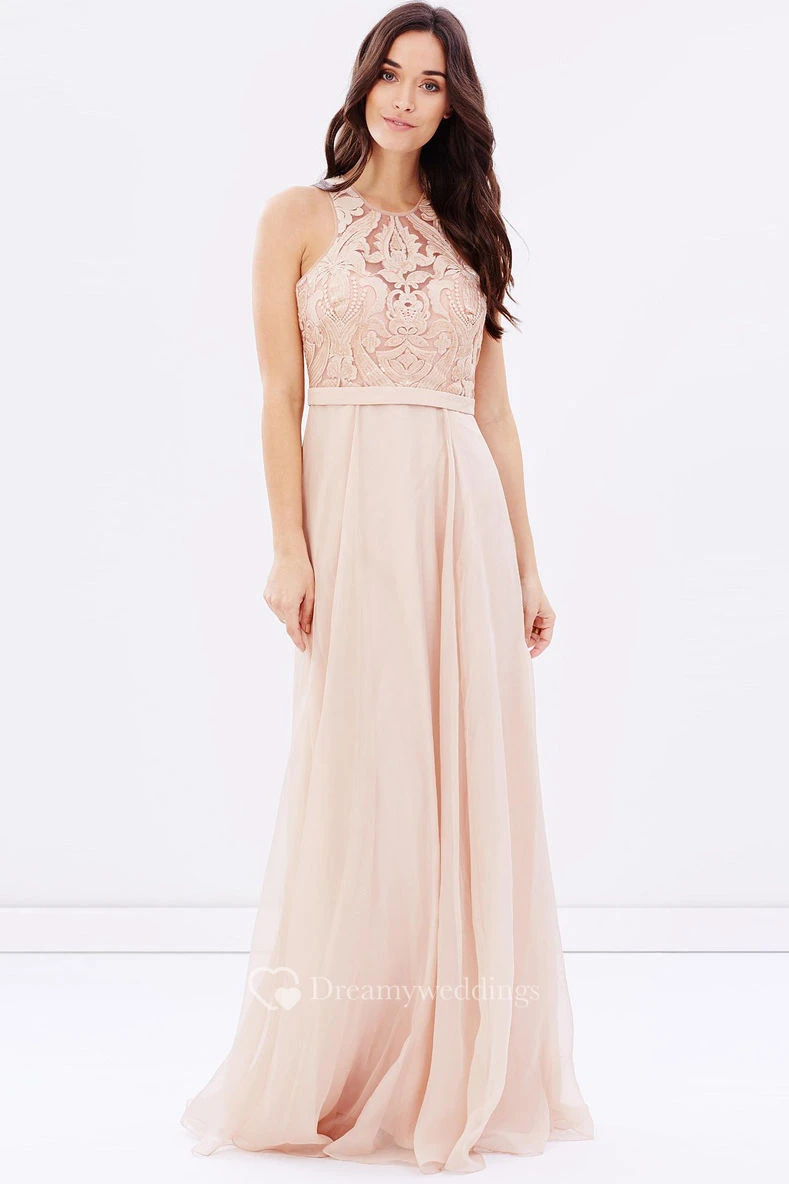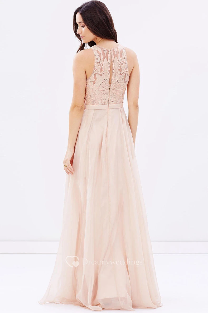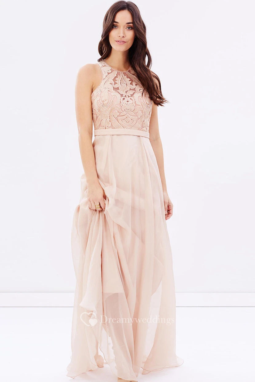 Sheath Sleeveless Appliqued Scoop Neck Chiffon Bridesmaid Dress With Sequins