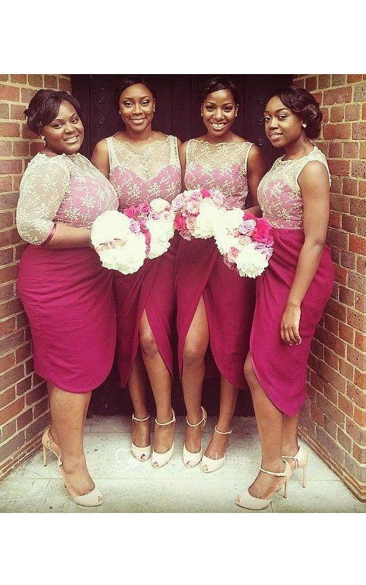 Sheath Sleeveless Bell Bat Split Front Embroidery Chiffon Lace Dress