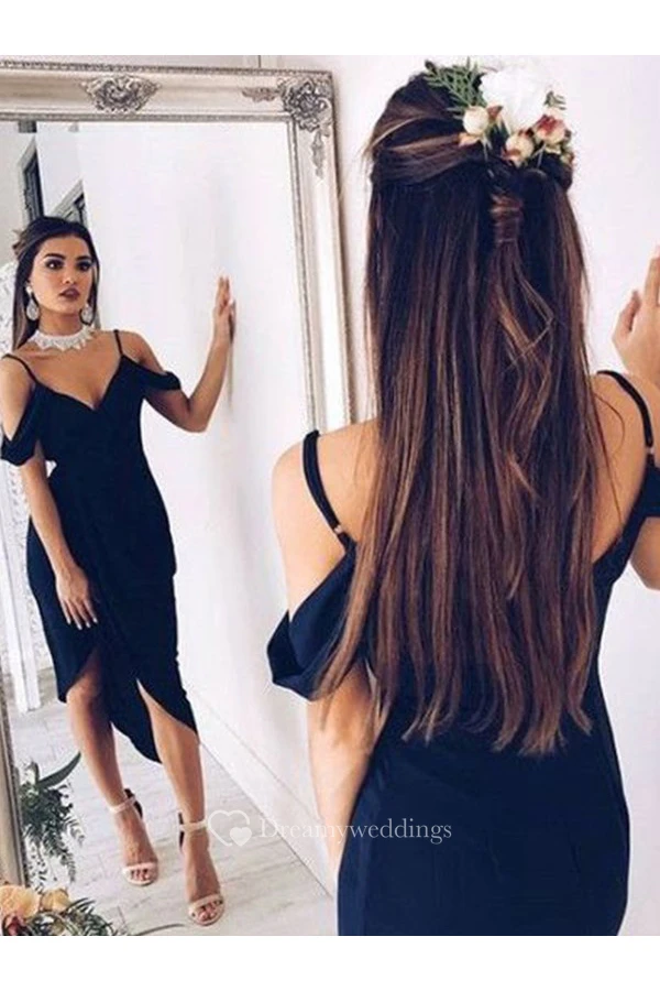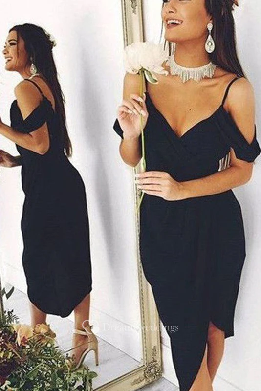 Sheath Sleeveless Chiffon Off-the-shoulder Spaghetti Low-V Back High-low Homecoming Dress