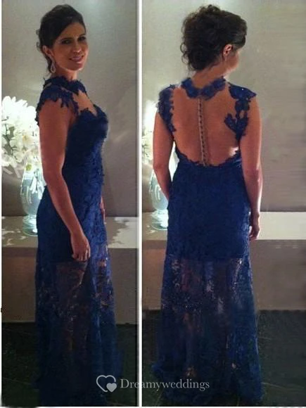 sheath Sleeveless High Neck Lace Floor-Length Dresses
