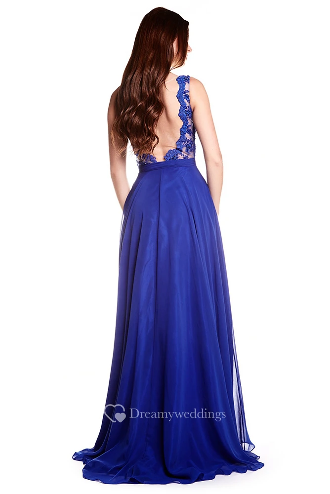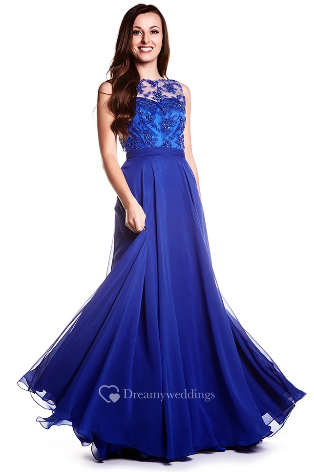 Sheath Sleeveless Jewel Neck Appliqued Chiffon Prom Dress