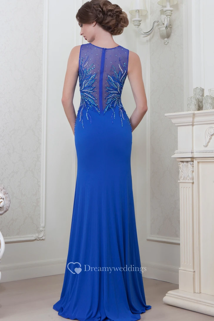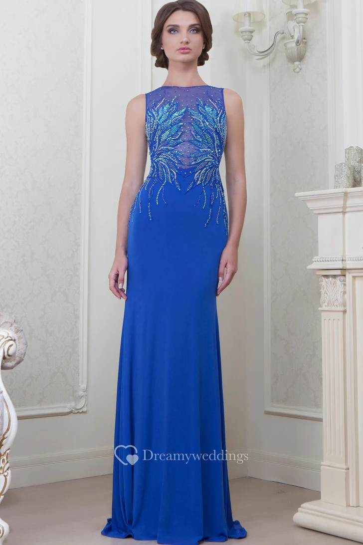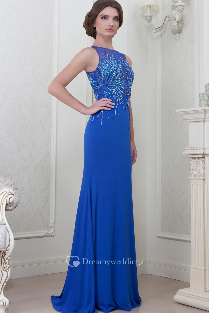 Sheath Sleeveless Jewel-Neck Long Jersey Evening Dress