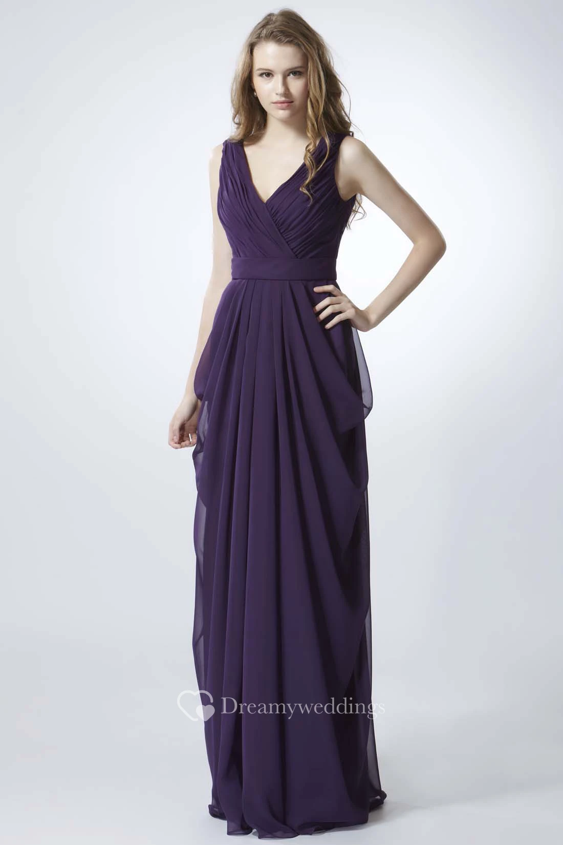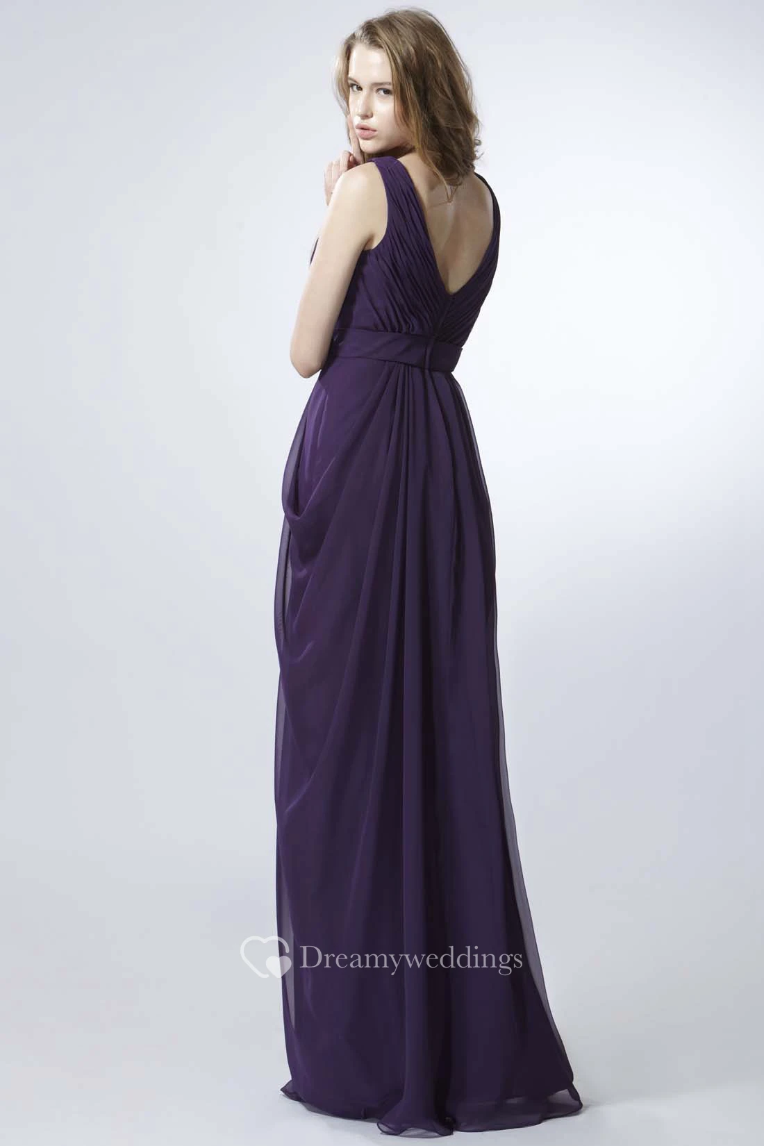 Sheath Sleeveless V-Neck Ruched Chiffon Bridesmaid Dress With Draping