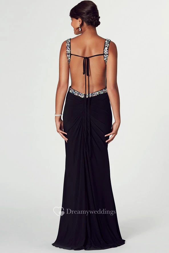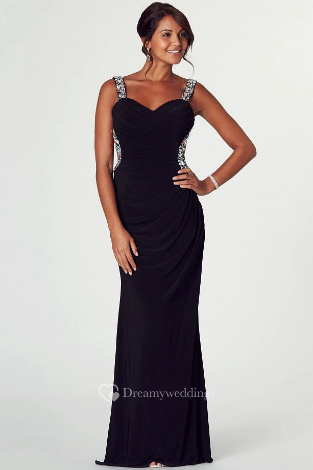 Sheath Straps Floor-Length Beaded Chiffon Prom Dress With Backless Style And Side Draping
