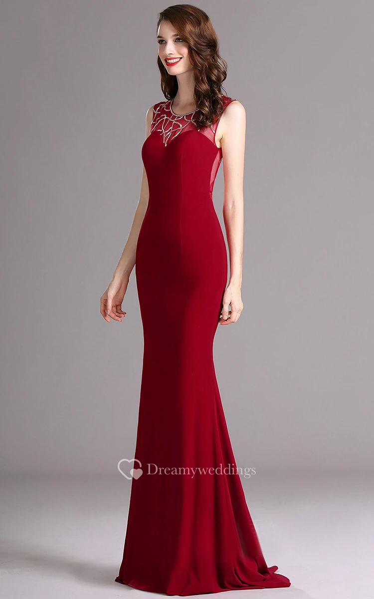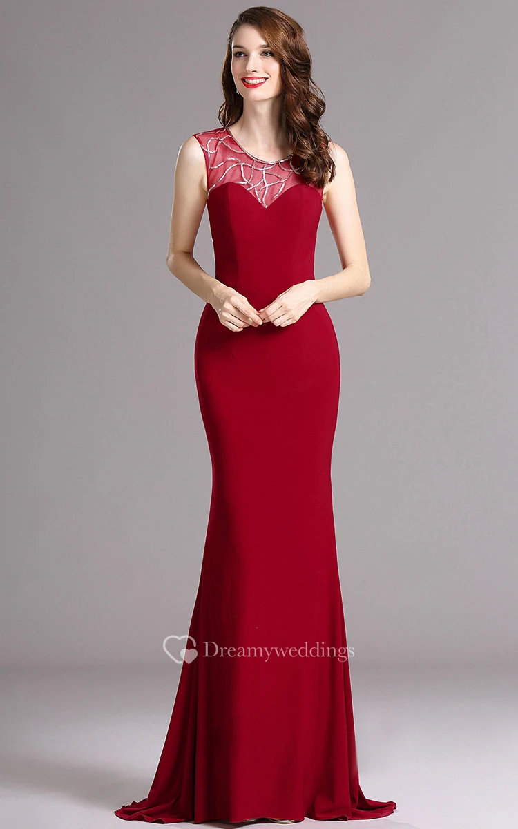 Sheath Sweep Scoop Sleeveless Jersey Sequins Dress
