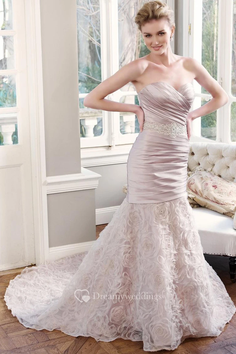 Sheath Sweetheart Criss-Cross Floor-Length Sleeveless Wedding Dress With Waist Jewellery And Ruffles