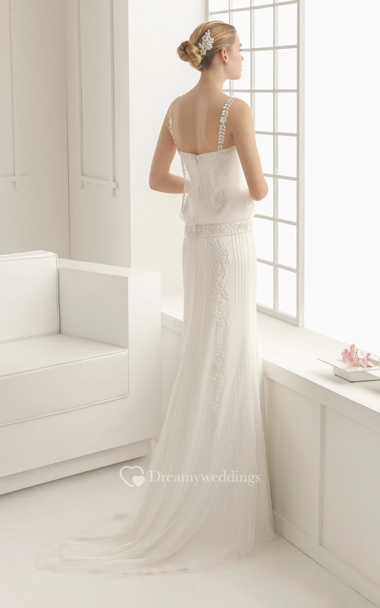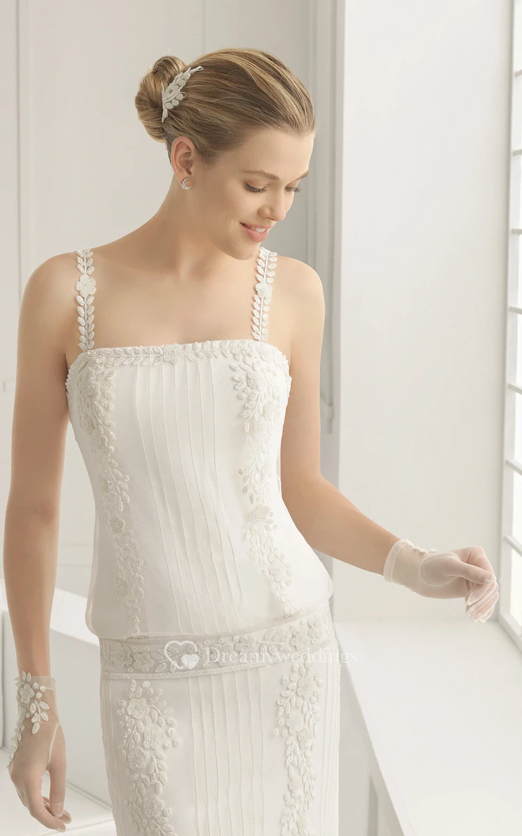 Sheath With Delicated Lacy Appliques And Organ Plaits