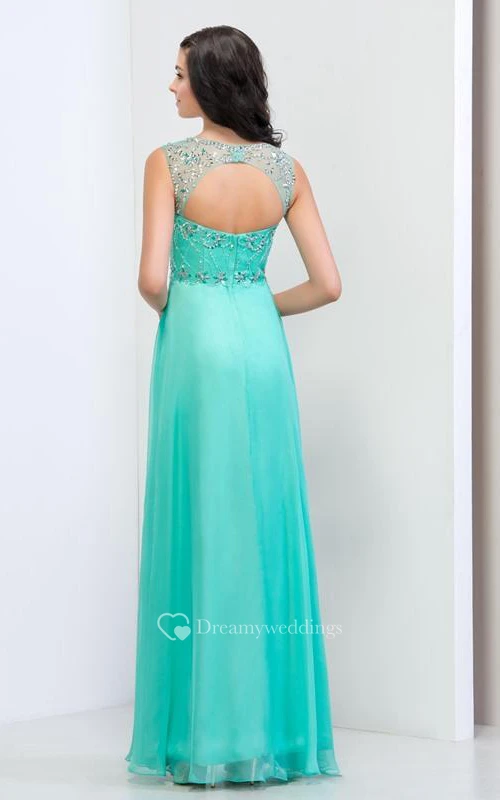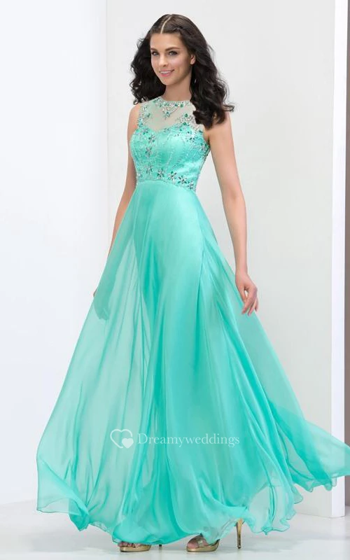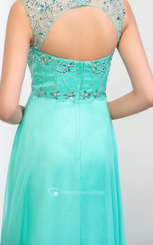 Sheer Neck Sequins Beading Open Back Prom Dresss