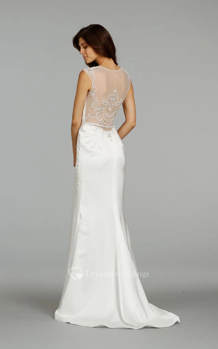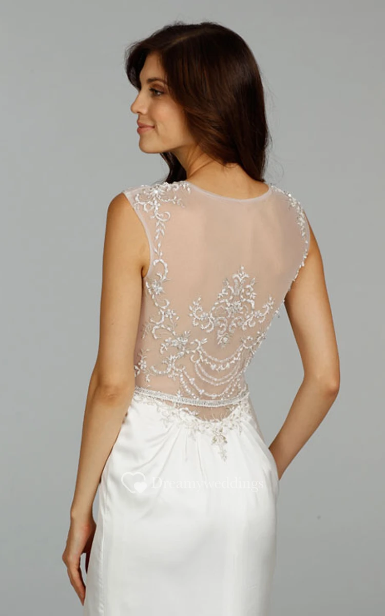 Shimmering Cap Sleeve Charmeuse Dress With Beaded Embroidered Sheer Back