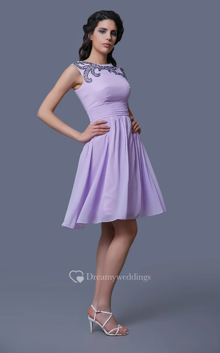 Short A-Line Sleeveless Chiffon Dress With Beadwork and Jewel Neck