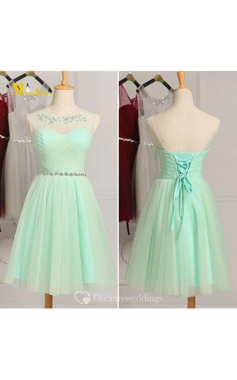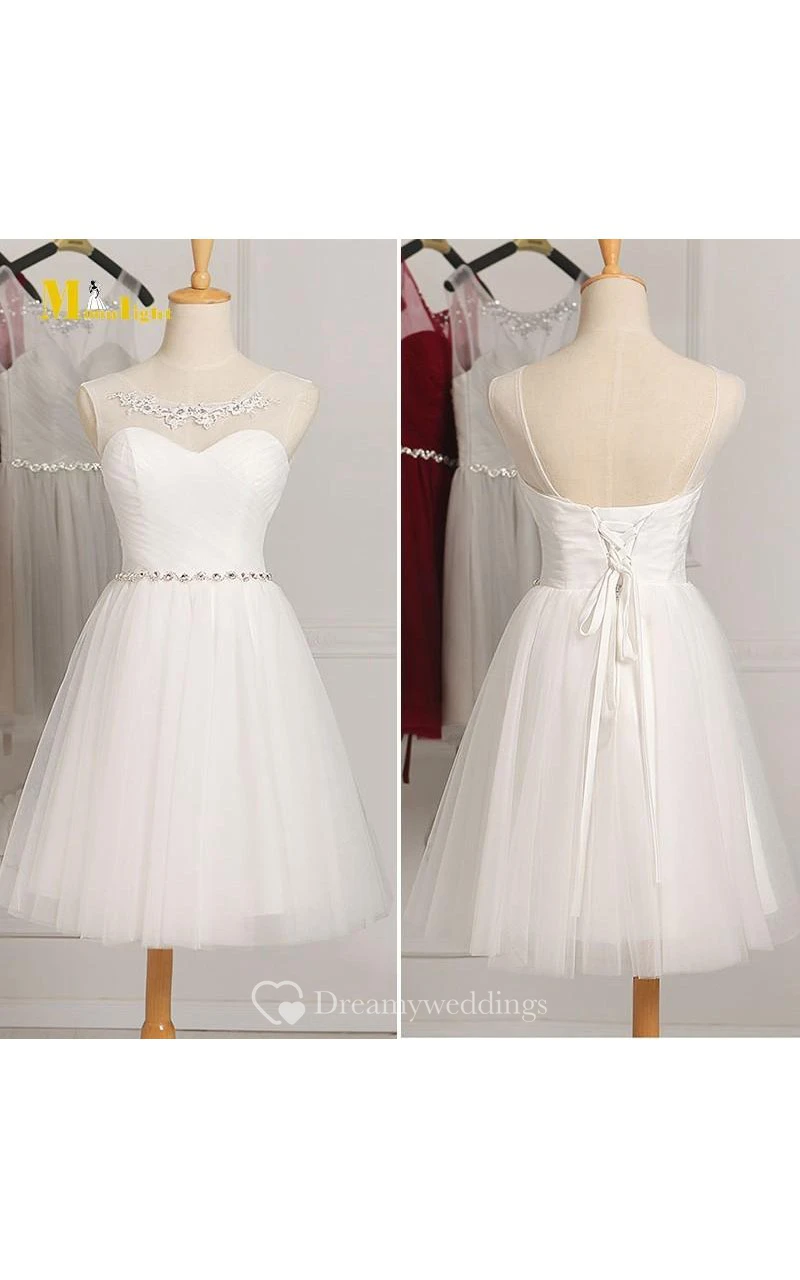 Short A-Line Tulle Sweetheart Illusion Ruched Bodice