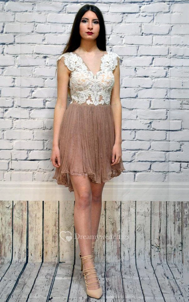 Short Backless Lace Dress With Sequins&Embroideries