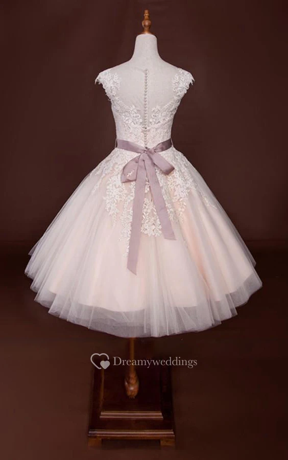 Short Bell Cap Beading Appliques Zipper Lace-Up Back Chiffon Tulle Lace Sequins Organza Satin Taffeta Dress