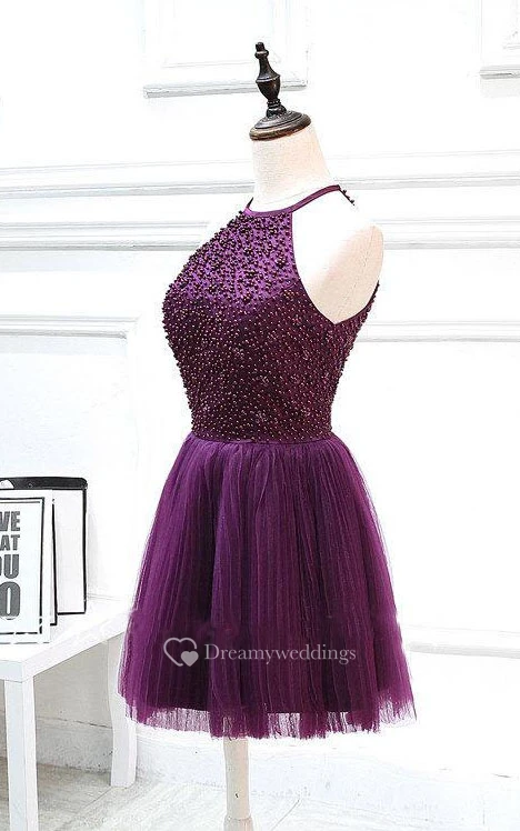 Short Halter Beaded Dress With Pleats