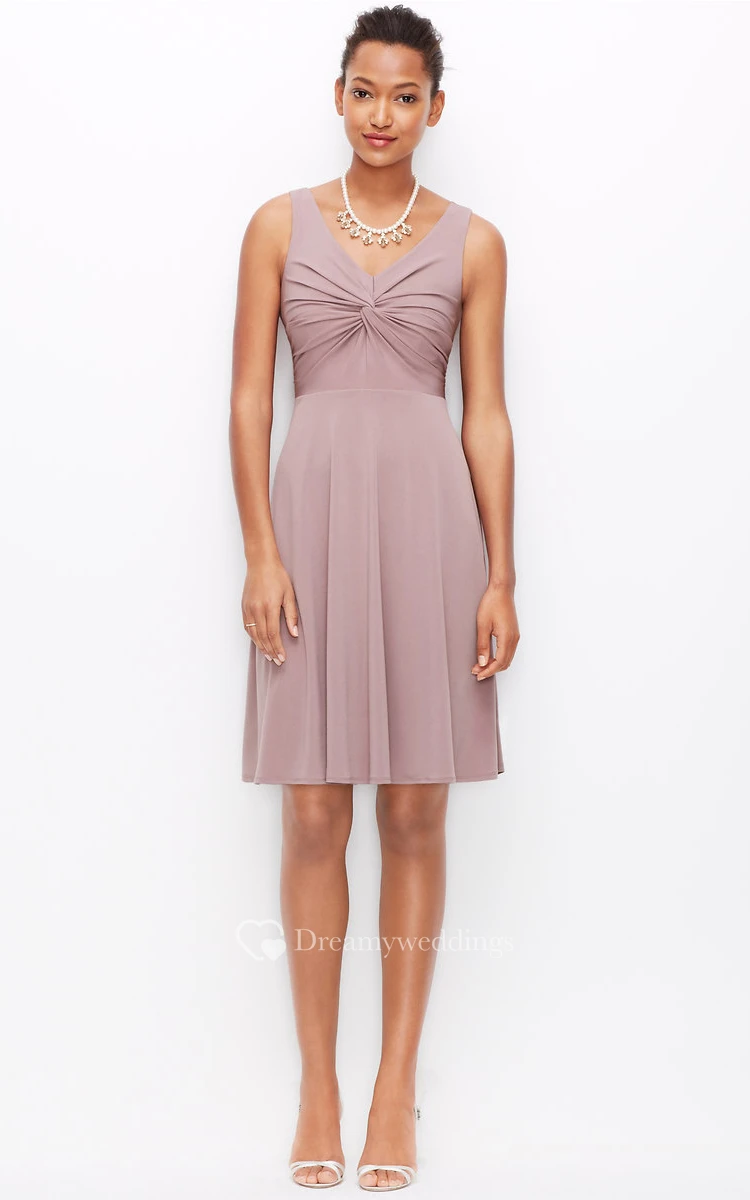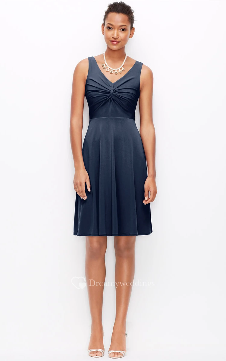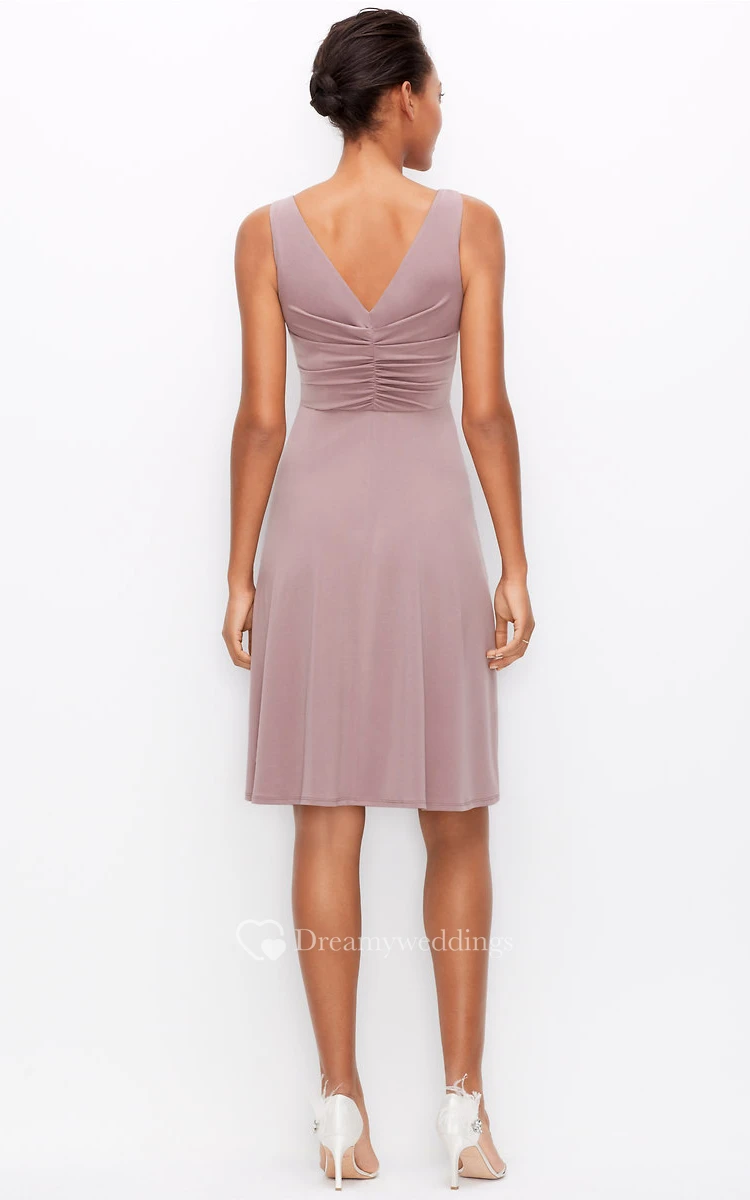 Short Impressive V-Neck Sleeveless Jersey Dress