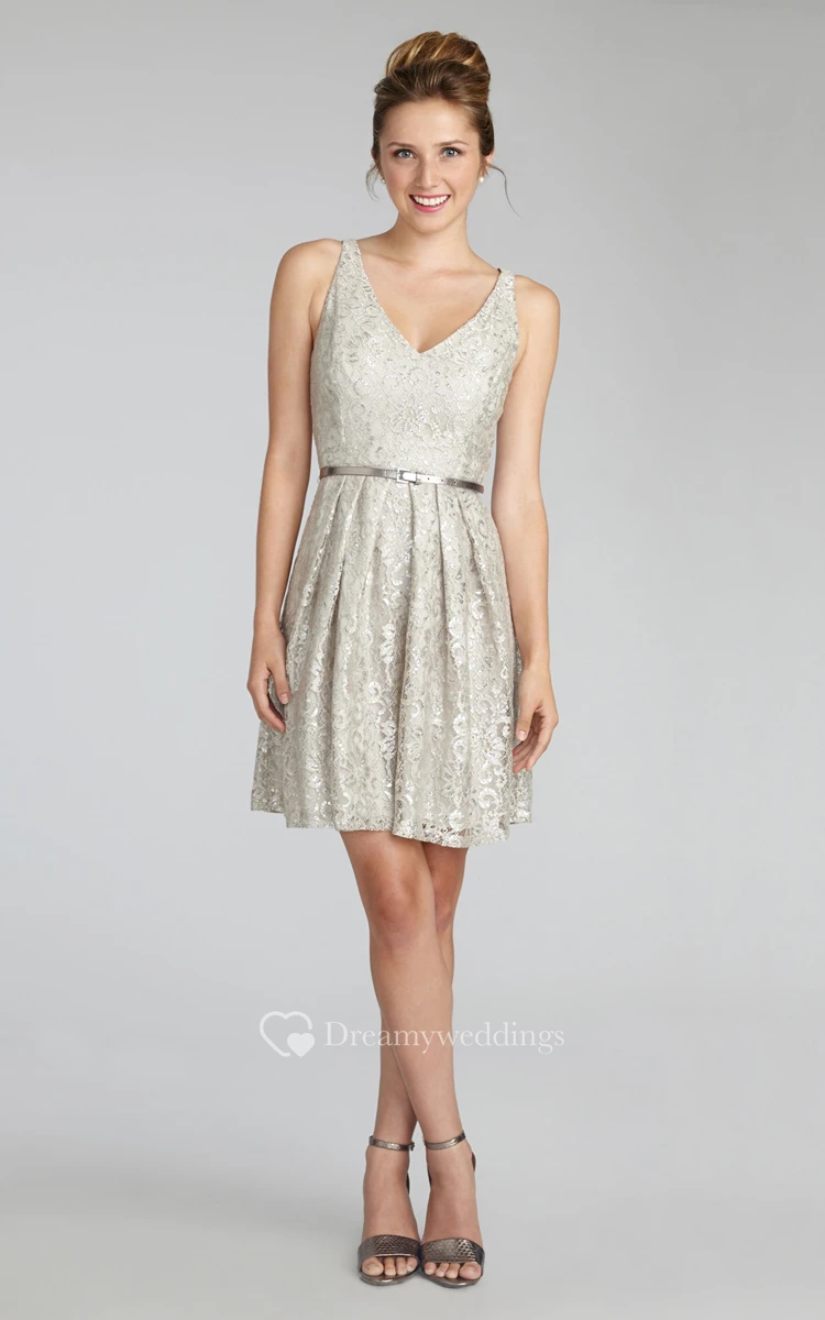 Short Lavish Lace Sleeveless Dress With V-Neck