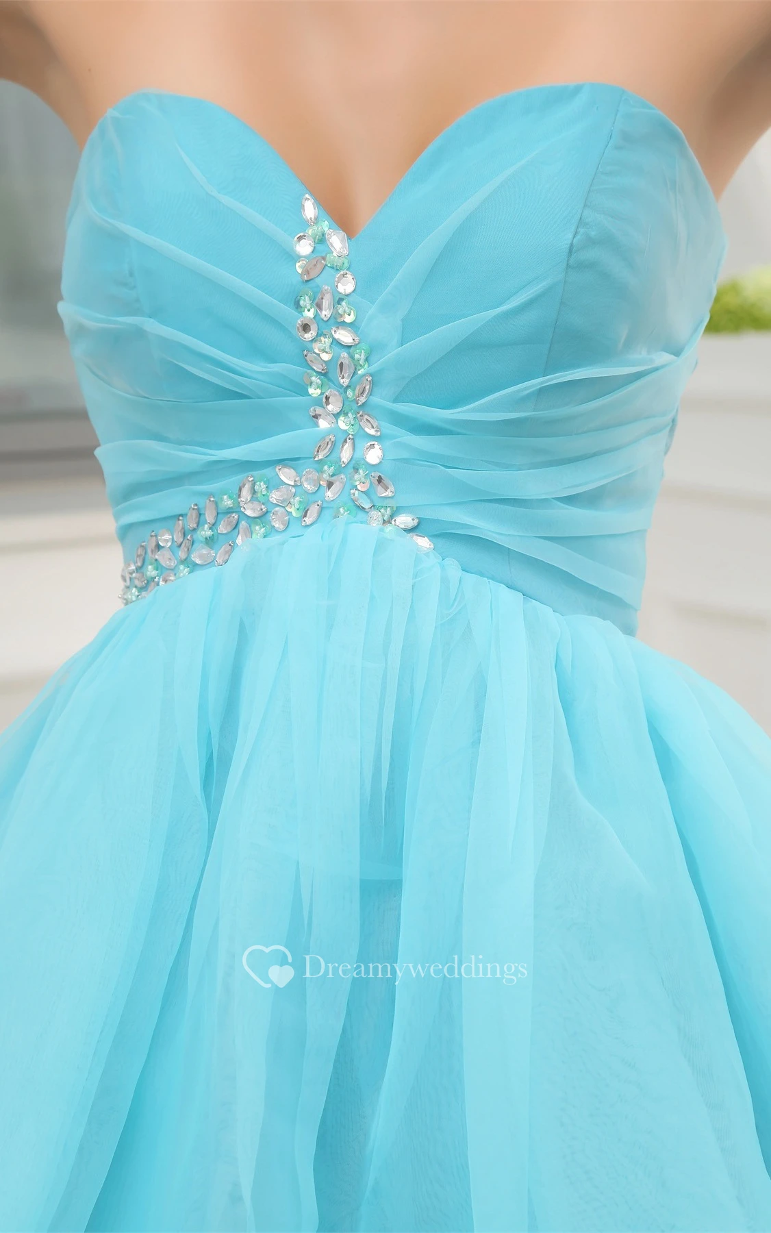 Short-Length Sweetheart A-Line Ruched Dress With Crystal Detailing Zipper Back