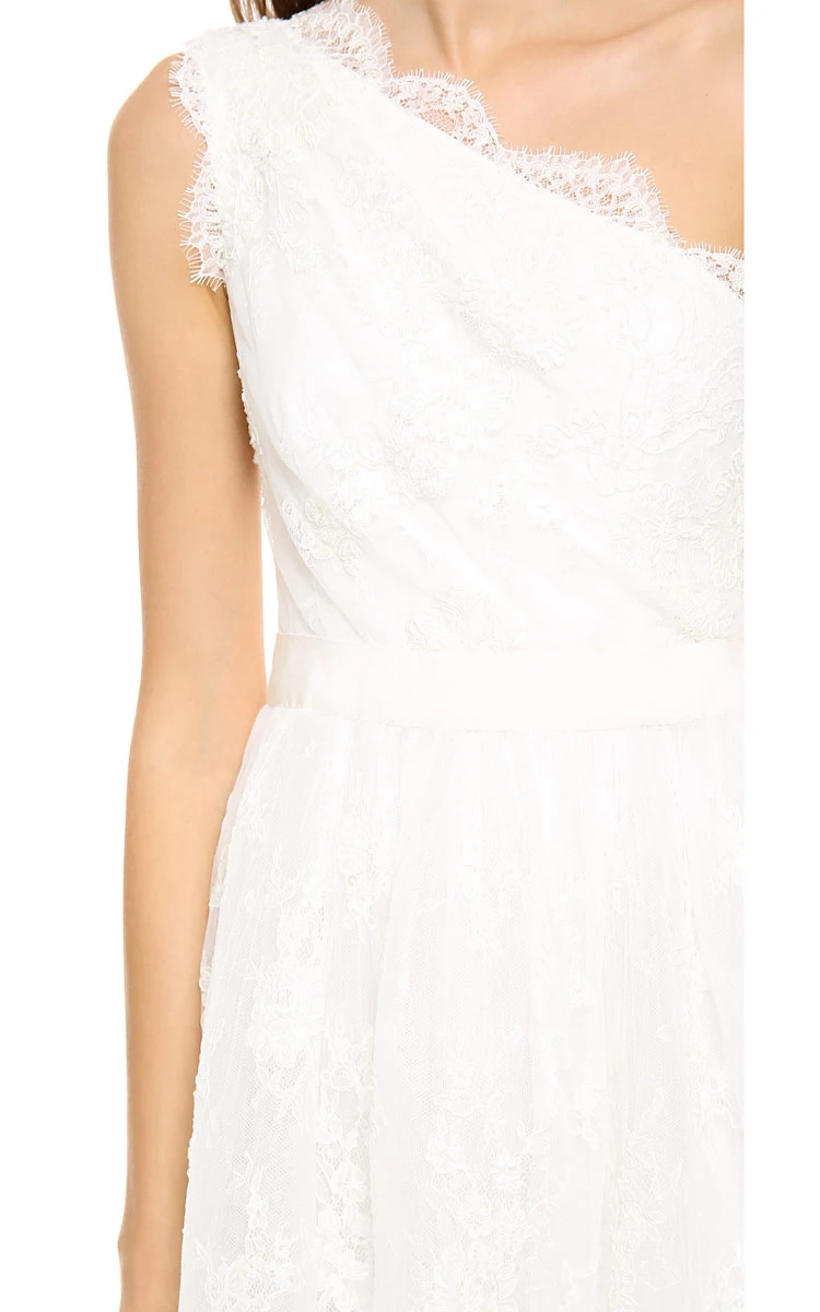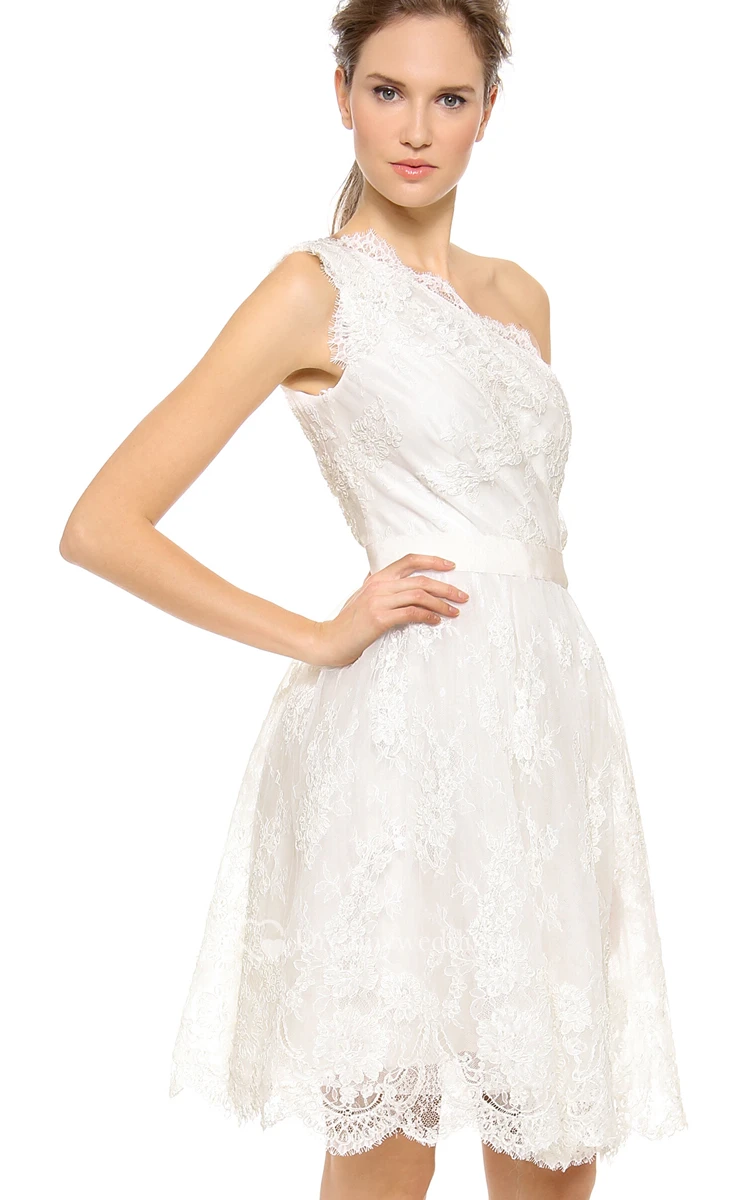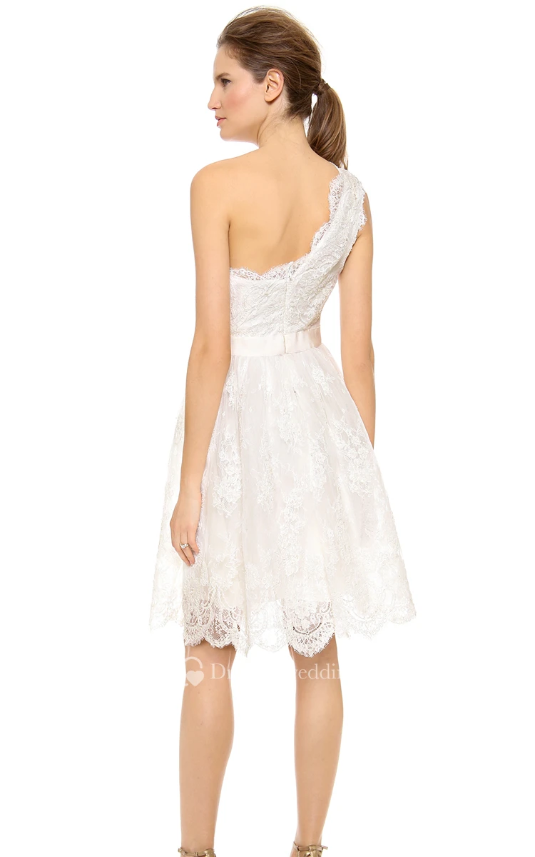 Short One-shoulder A-line Lace Dress With Satin Sash