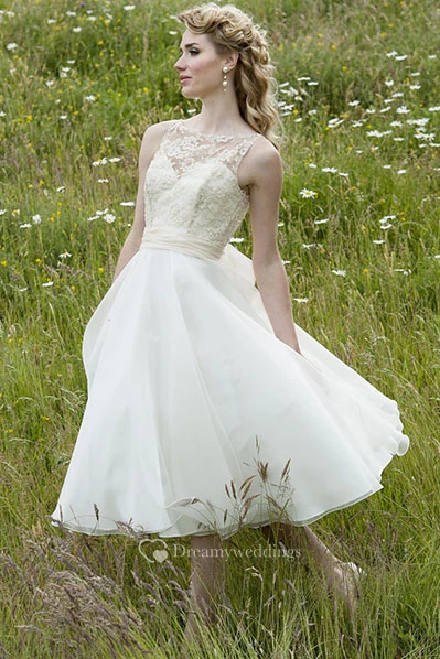 Short Scoop Appliqued Sleeveless Chiffon Wedding Dress