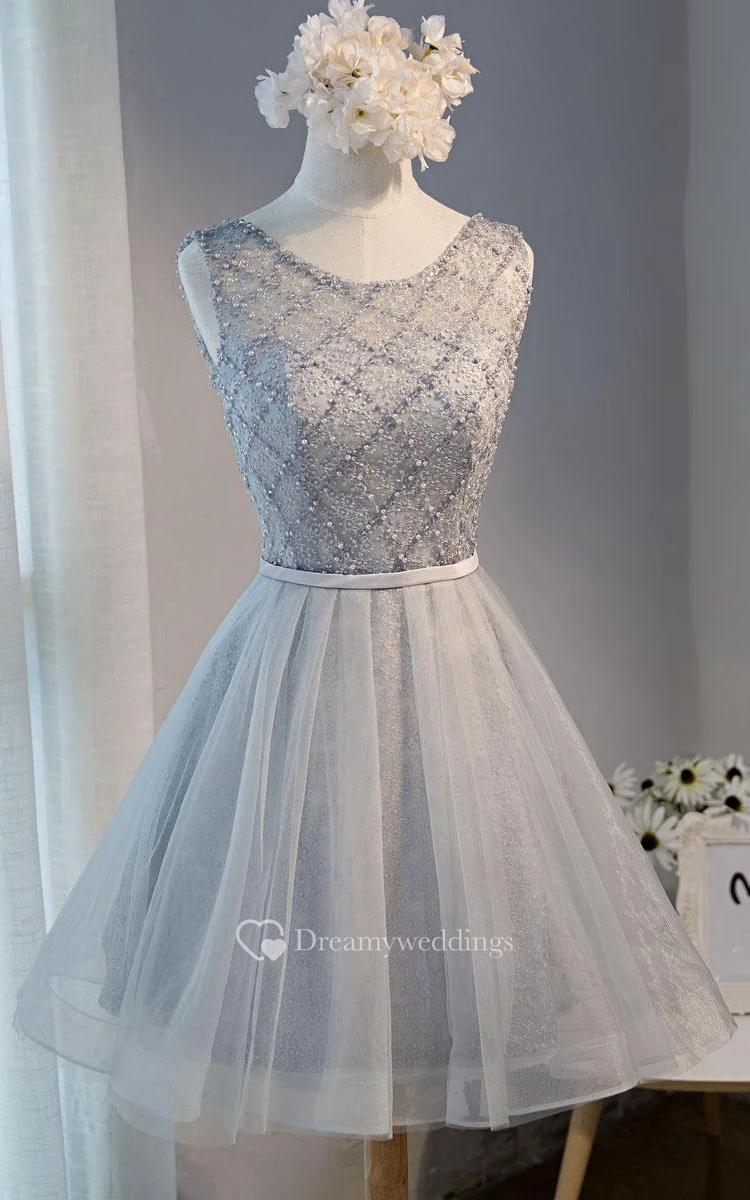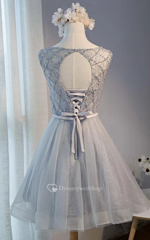 Short Scoop Sleeveless Lace Corset Back Dress with Keyhole