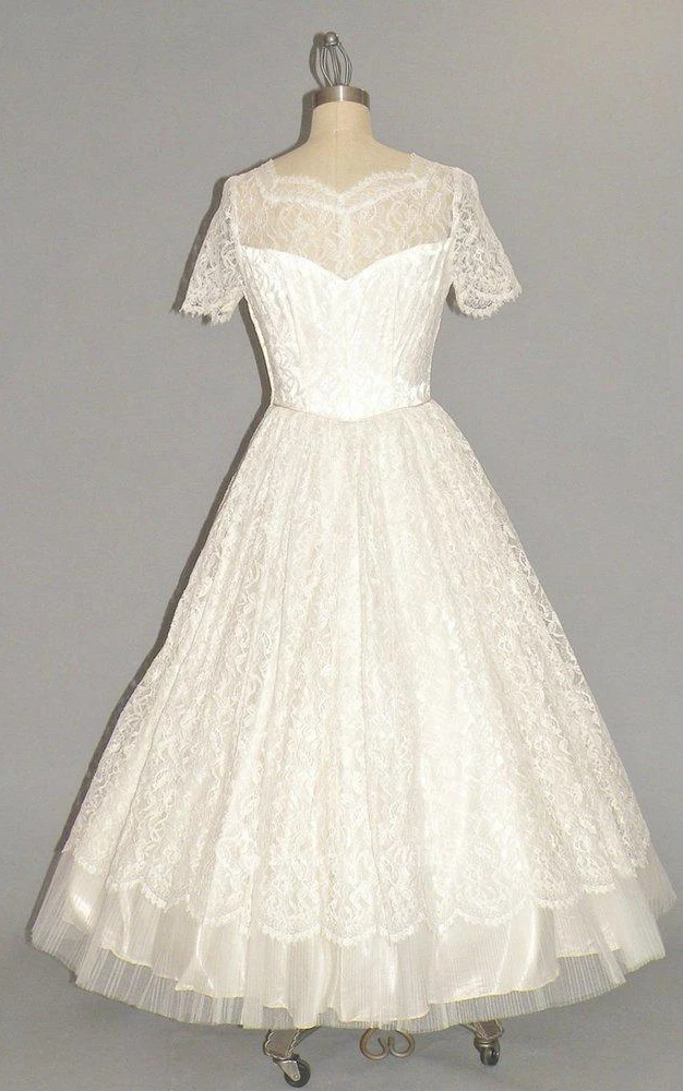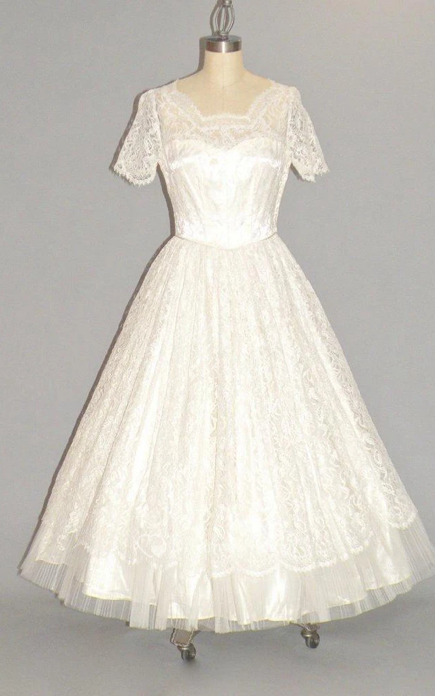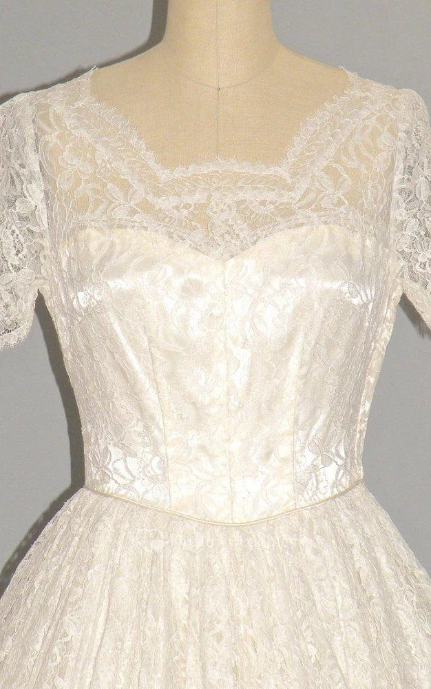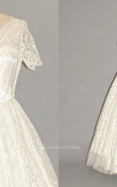 Short Sleeve A-Line Lace Dress With Scalloped Neckline