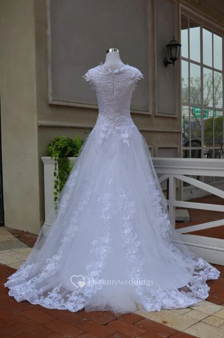 Short Sleeve A-Line Tulle Dress With Lace Bodice