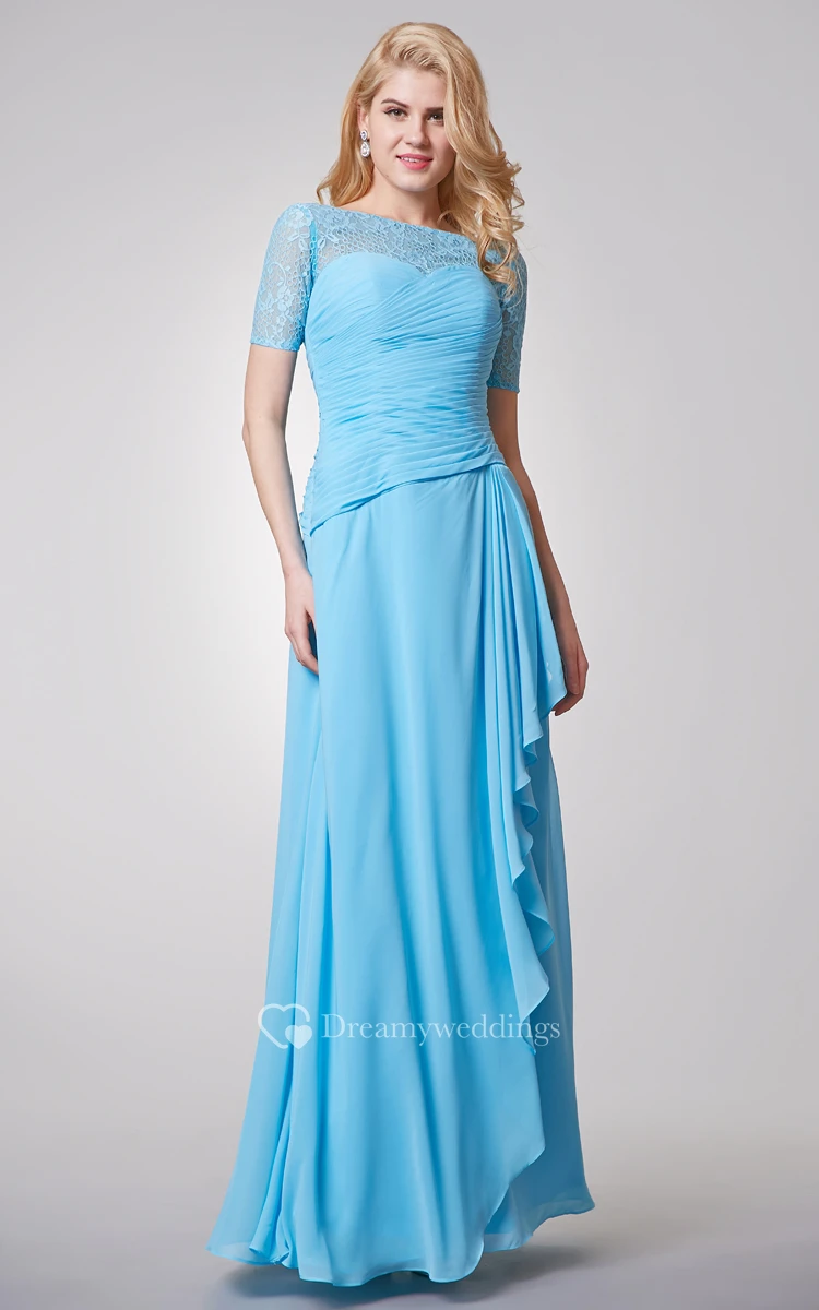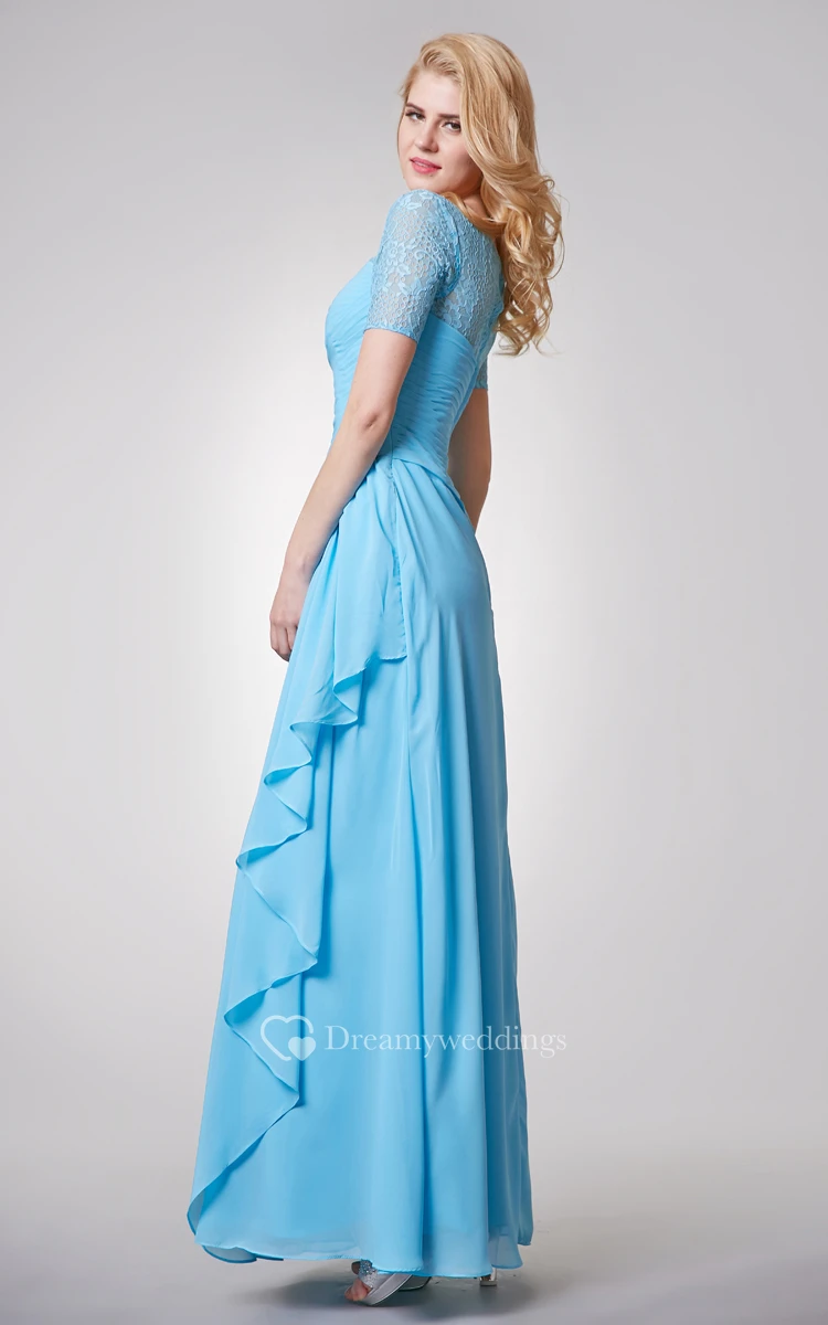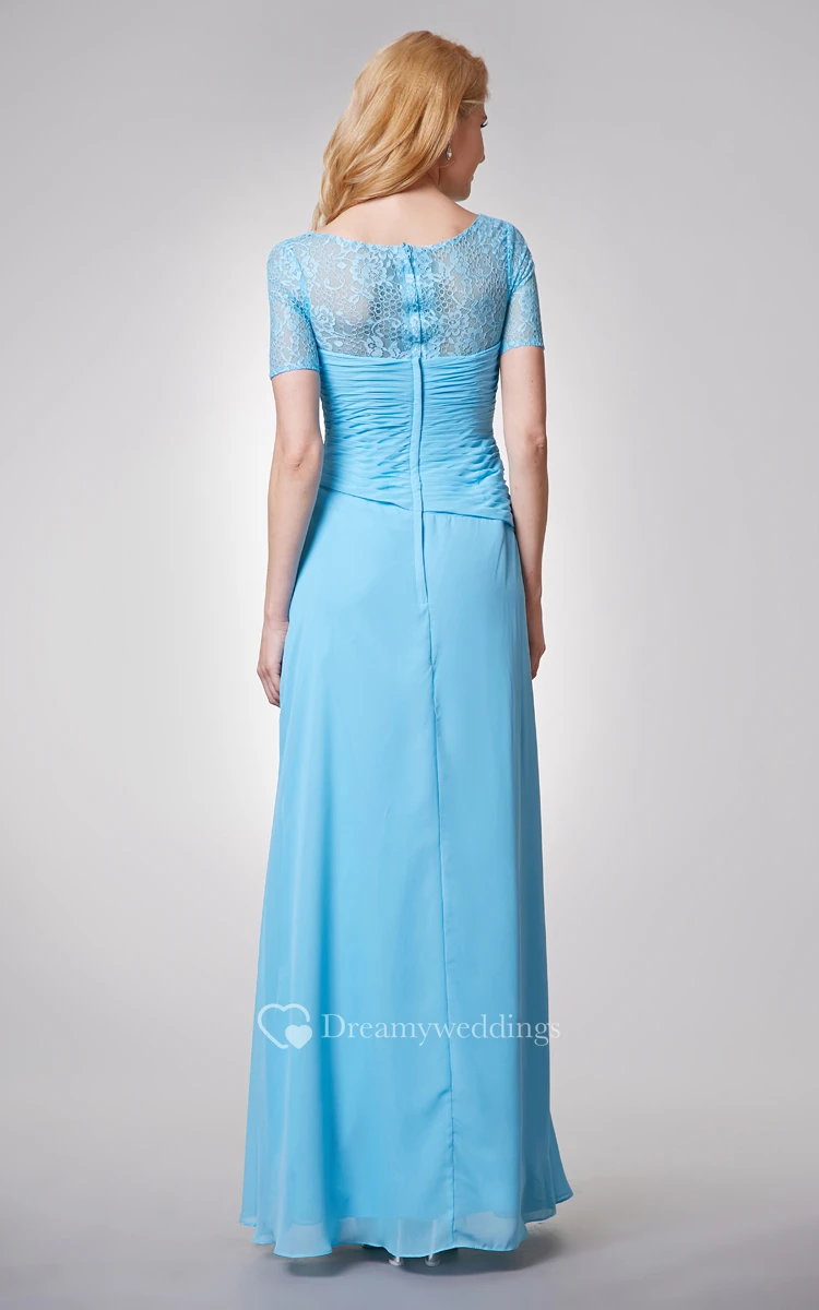 Short Sleeve Long Chiffon and Lace Dress