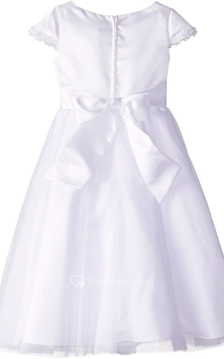 Short-sleeved A-line Appliqued Dress With Bow