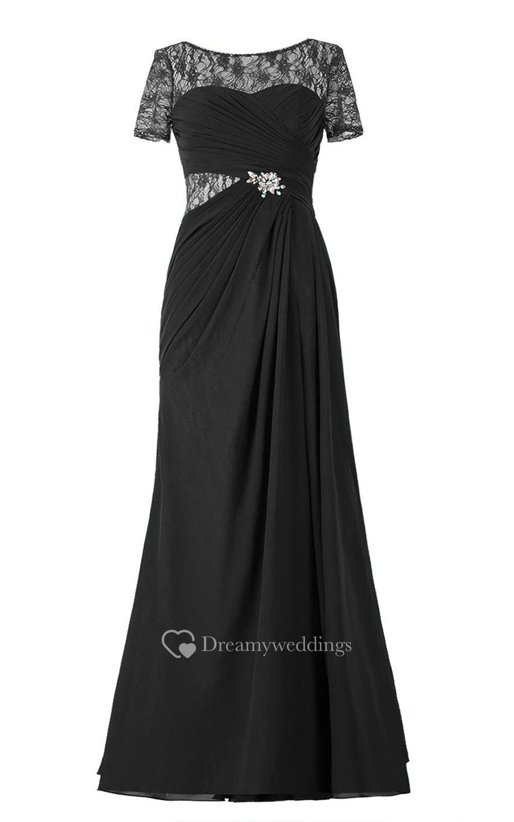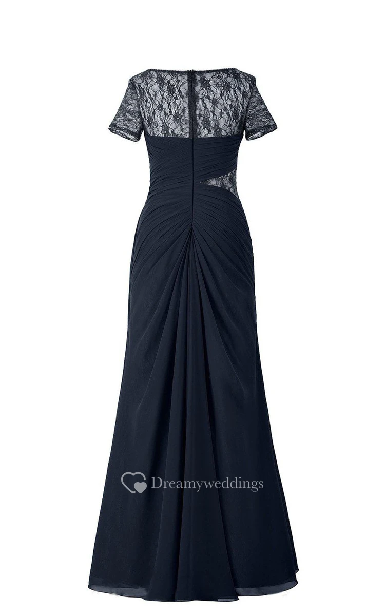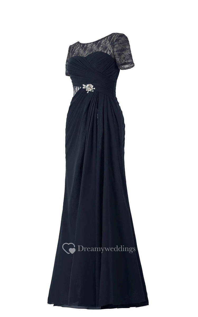 Short-sleeved Chiffon Gown With Illusion Style